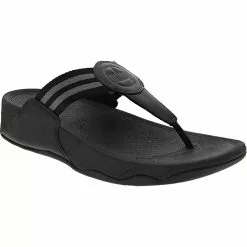 FitFlop WalkStar Leather Womens Flip Flop Sandals Black