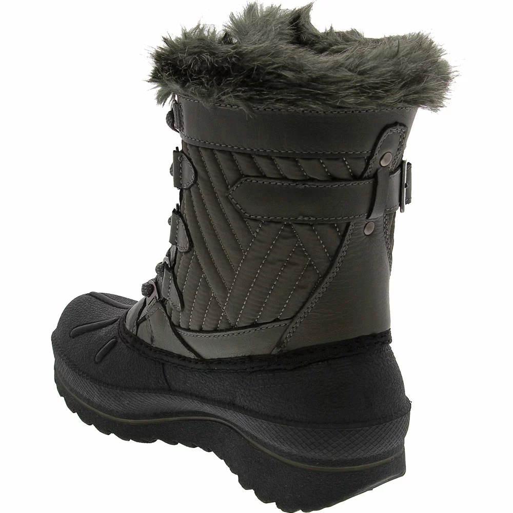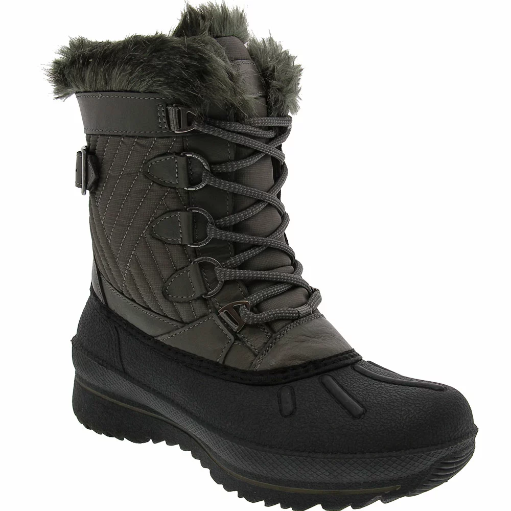 Absolute Canada Leah Comfort Winter Boots – Womens. Stay comfortably warm without sacrificing looks with these fashionable womens winter boots. The perfect choice for snowy days, the Absolute Canada Leah Comfort Winter Boots are designed with a natural rubber sole for durability and traction on slippery surfaces. The faux leather upper and faux fur lining add wintry flair while keeping you warm and cozy.