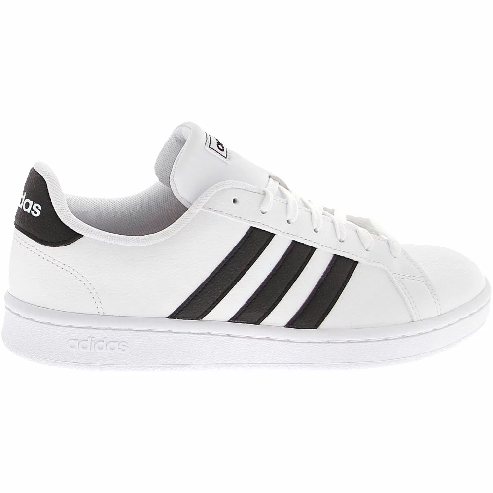 Adidas Grand Court Women’s Life Style Shoes. You will love having all of the benefits of the classic Adidas women’s lifestyle athletic shoes without all the bulk in this updated version. Clean lines and sleek styling are accented by the classic Adidas 3-Stripes in black against a crisp white synthetic leather upper. A stitched-on rubber outsole provides grip on most surfaces. The Cloudfoam Comfort sockliner and padded collar offer comfortable wear all day and the adjustable lace closure gives a custom fit every time.