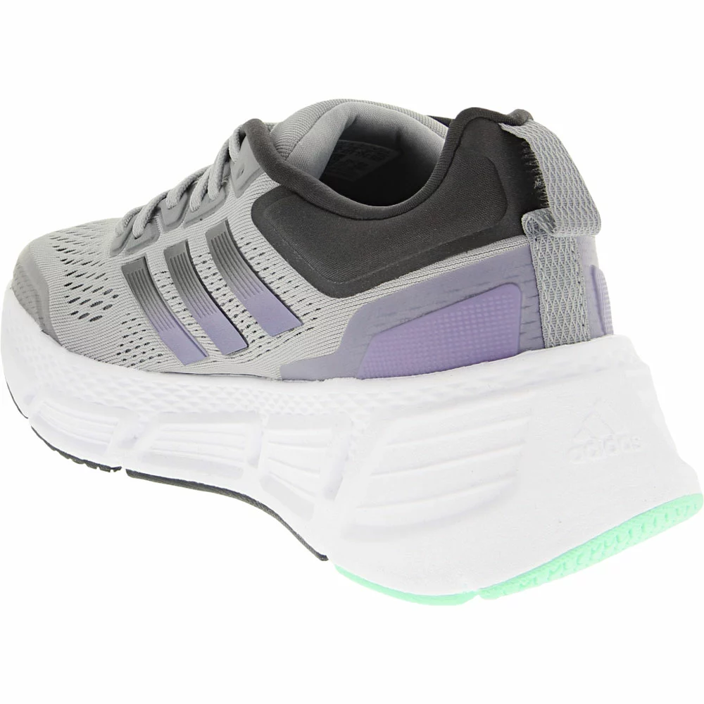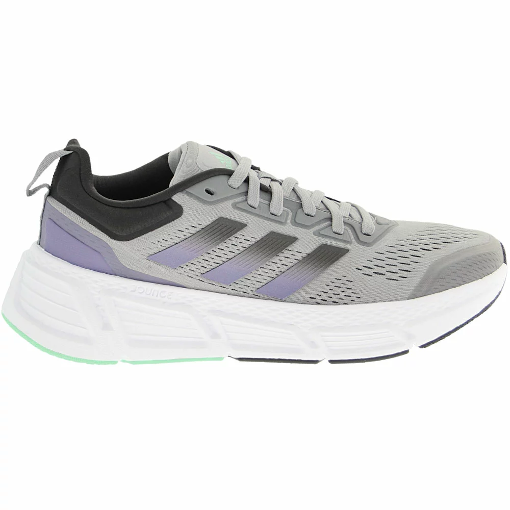 Treat your feet to the plush comfort of Adidas Questar womens running shoes. Designed for daily running, the Questar incorporates a springy midsole with Bounce EVA foam for responsiveness and elasticity. Breathable textile and synthetic uppers contain a minimum of 50% recycled content, but they also keep your feet cooler and drier with every stride. Synthetic outsoles with molded heel counters offer traction and stability. Rear pull tabs make on and off a cinch.