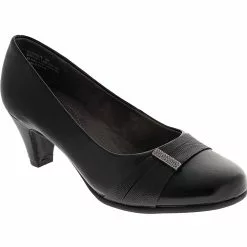 *Comfort insole; Lightweight, flexible outsole with a leather wrapped stacked heel