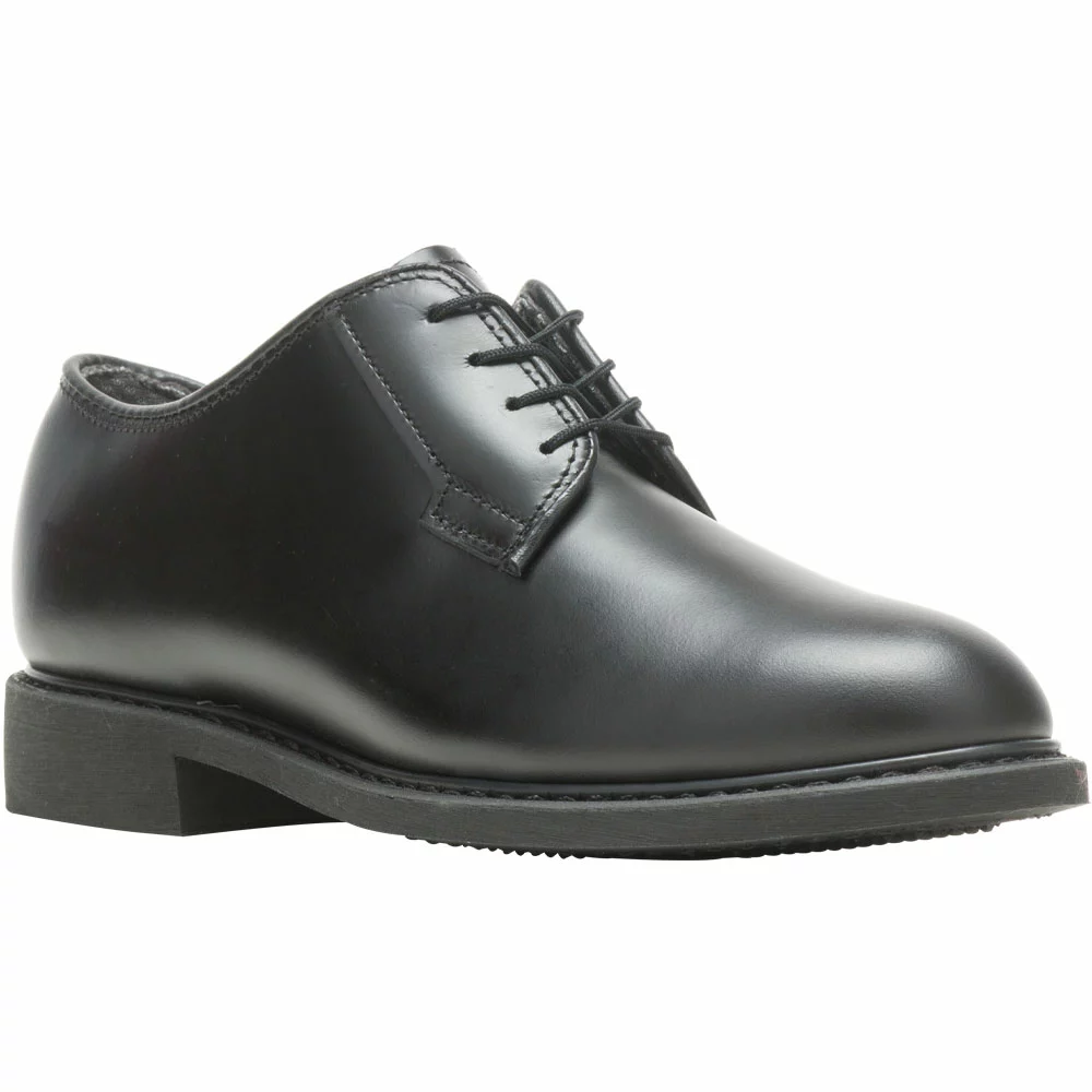 Bates Uniform Ox Leather Non-Safety Toe Work Shoes – Womens. On your feet and in uniform all day? Bates Uniform Oxford shoes are just what you need. Bates has years of experience in crafting womens uniform work shoes, and that experience shows in the quality and comfort you get with this oxford. The black leather upper is easily polished, ensuring that you are always uniform compliant. The Vibram rubber outsole offers ample support and cushioning from impacts on hard surfaces.