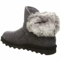 Bearpaw Koko Comfort Women’s Winter Boots. You won’t mind the cold weather with these stylish, cozy booties to keep the chill at bay! The genuine suede upper is treated with NeverWet® technology from Rust-Oleum® to ensure that any dirt and debris that collect on your boots can be rinsed away easily. The lining is a wool blend, with a sheepskin footbed, keeping your feet toasty warm. A strap across the vamp and a faux rabbit fur collar add interest and personality to these fun booties!