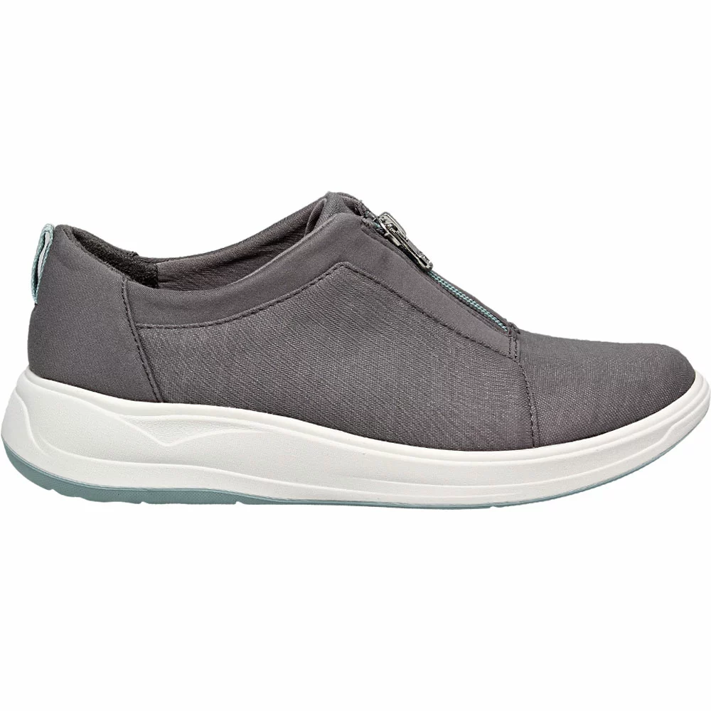 These stylish womens casual shoes make every step feel breezy and light. The stretchy fabric upper features a front zipper that gives the sporty silhouette chic flair. Constructed with recycled materials, these machine-washable shoes feature the latest in comfort technologies. A memory foam footbed supports the arch and a breathable lining is treated to keep odors at bay. The lightweight outsole is flexible and provides optimal traction.