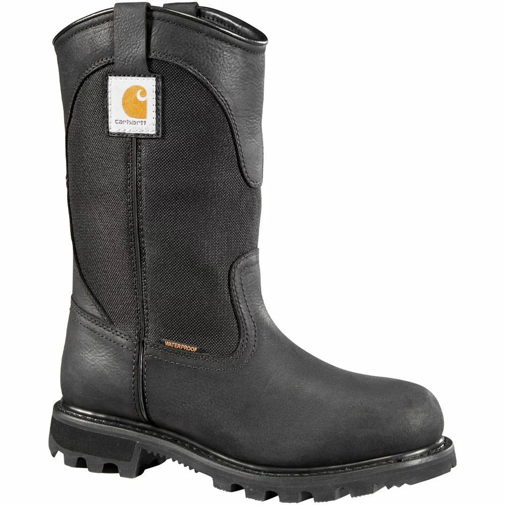 Carhartt Cwp1151 Non-Safety Toe Work Boots – Womens. When the task at hand requires dealing with wet, muddy conditions, these pull-on womens soft toe work boots will keep your feet dry and secure. Rugged and waterproof, their 10-inch shaft makes slipping them on easy and comfortable while staying secure. A cushioned insole envelopes the feet in comfort, even in less than even terrains. Each step is stable and durable thanks to a rubber outsole with an innovative tread designed to reduce slipping.