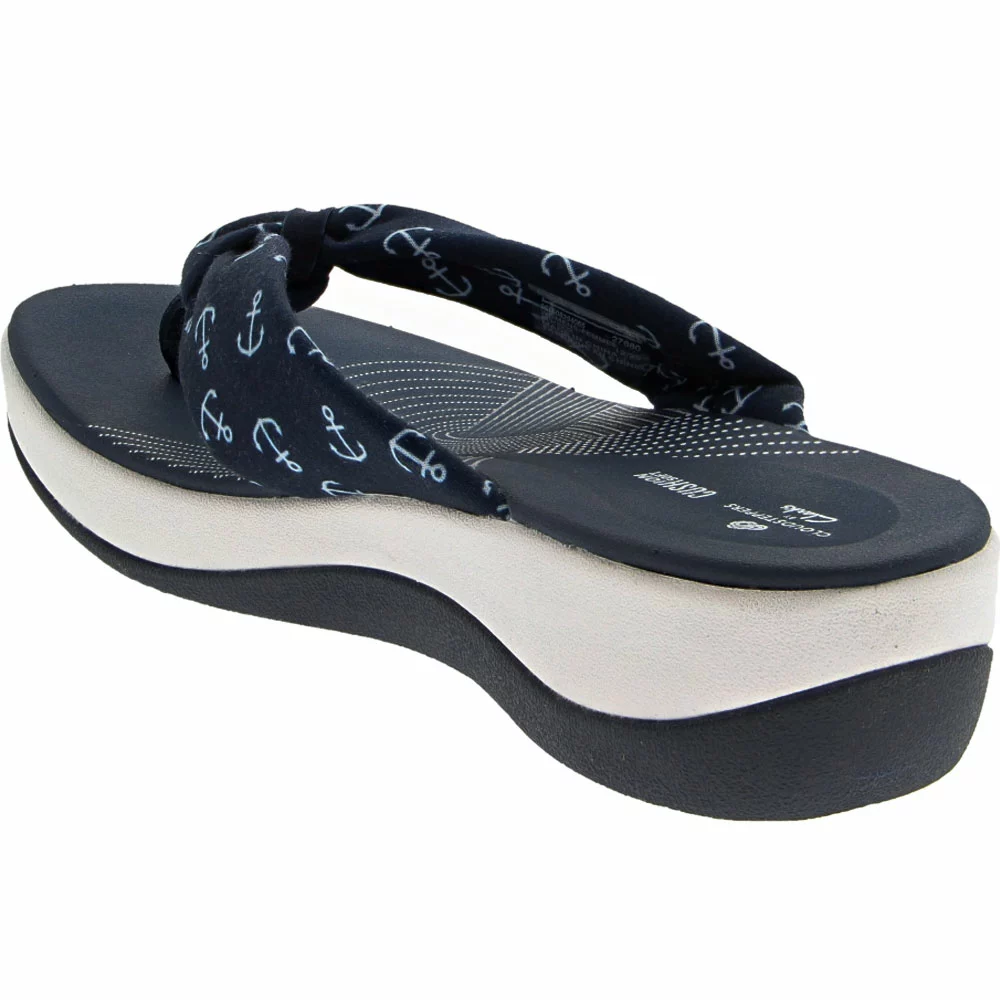 Clarks Arla Gilson Women’s Flip Flop Sandals. Detailed with a soft knotted design and a platform wedge heel, the Clarks Arla Gilson Flip Flopswill upgrade your sandal collection. This sandal not only was constructed for maximum support, but comfort as well. With its cushion footbed and easy slip-on thong opening, the Arla Gilson is sure to please.
