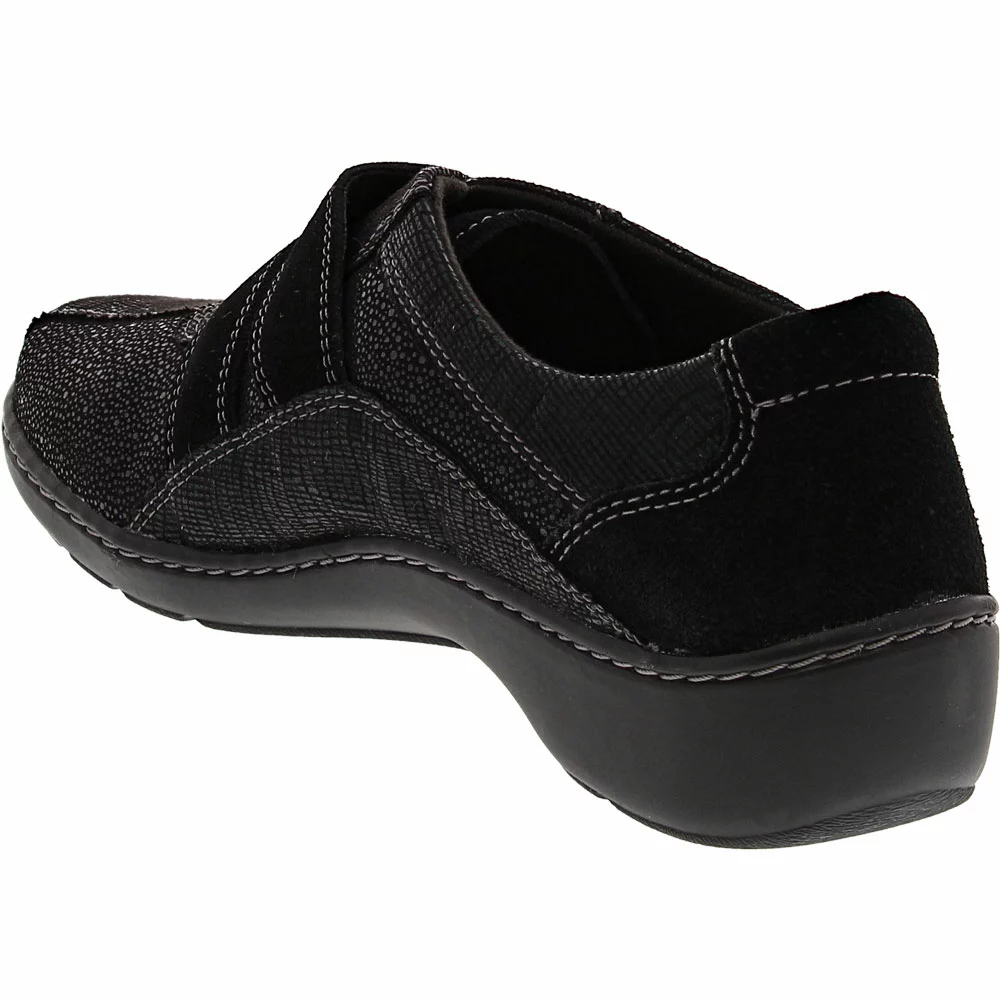 Clarks Cora Azalia Slip on Casual Shoes – Womens. Get the sporty style you love with a stylish flair wearing these womens slip on casual shoes. They have a leather and suede upper with subtle stitching and cutout accents that add to their charm. Easy to slip on, they have two adjustable straps across the forefoot for a custom fit. Designed for optimal comfort and support, they have a multi-density, shock-absorbing memory foam footbed and durable outsole that provides traction and stabilizes steps.
