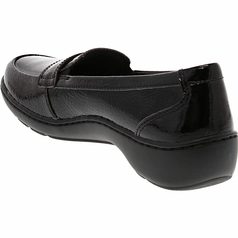 Clarks Cora Daisy Slip on Casual Shoes – Womens. A sophisticated take on casual loafers, these womens casual shoes are easily a closet staple. The Clarks Cora Daisy slip-on shoe is great for barefoot wear, with its moisture-wicking Ortholite footbed. It slides on easily with its slip-on design and hidden elastic gores for a comfortable fit. With a synthetic full-grain leather upper and decorative detailed strap, the Cora Daisy takes any casual outfit up a notch.