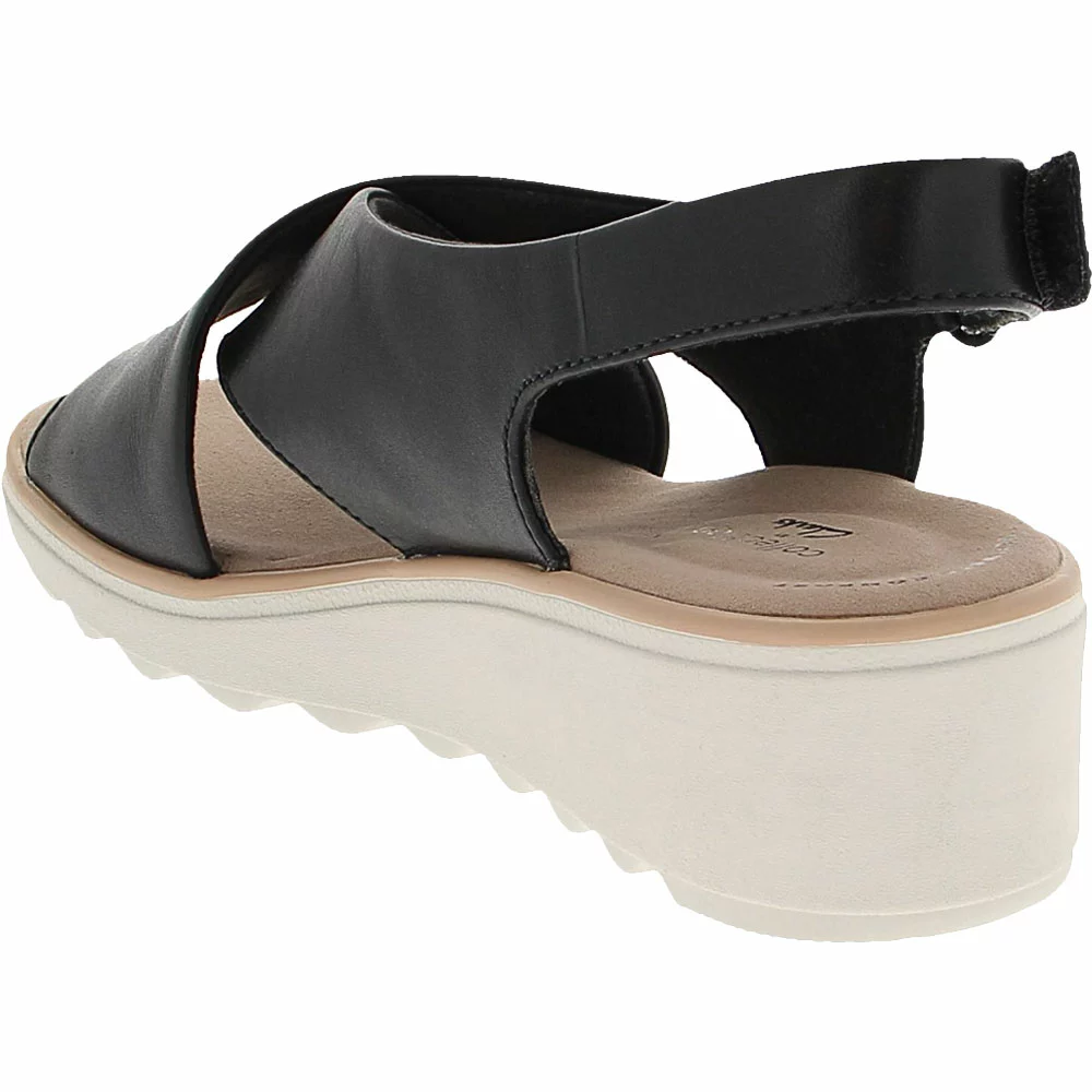 Clarks Jillian Sandals – Womens. Keep a spring in your step all summer long with these comfortable womens sandals. The leather upper features wide crisscross straps and an adjustable hook-and-loop closure around the heel. The Cushion Soft footbed and Ortholite foam inlay provide exceptional comfort for a busy day out on the town. Sturdy EVA outsoles provide traction and support while enhancing the sporty look of these sandals. Pair this versatile footwear with your favorite summer outfits.