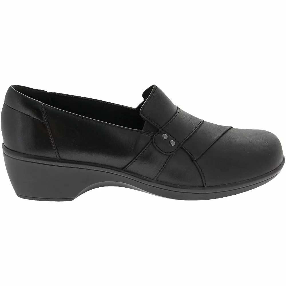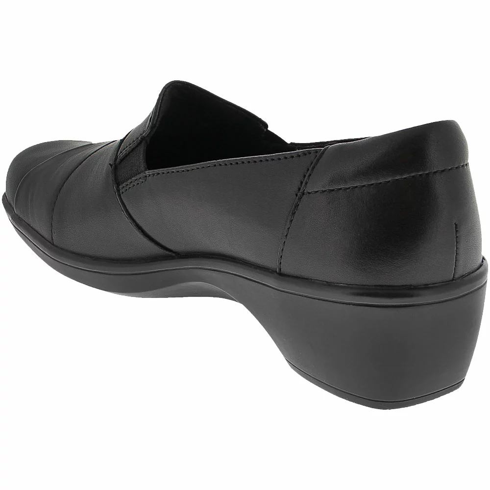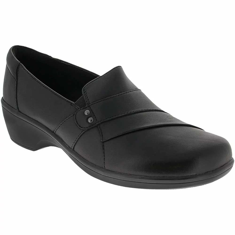 Clarks May Marigold Casual Dress Shoes – Womens. Find the classic looks you want without sacrificing comfort in these women casual dress shoes from the Clarks Collection. A 2-inch molded heel and soft leather uppers give you style that’s just as suited to a day at the office as an evening out. With a spacious toe box and an OrthoLite® footbed, these slip-ons give you all-day comfort, whether you’re working on your feet or strolling around town.