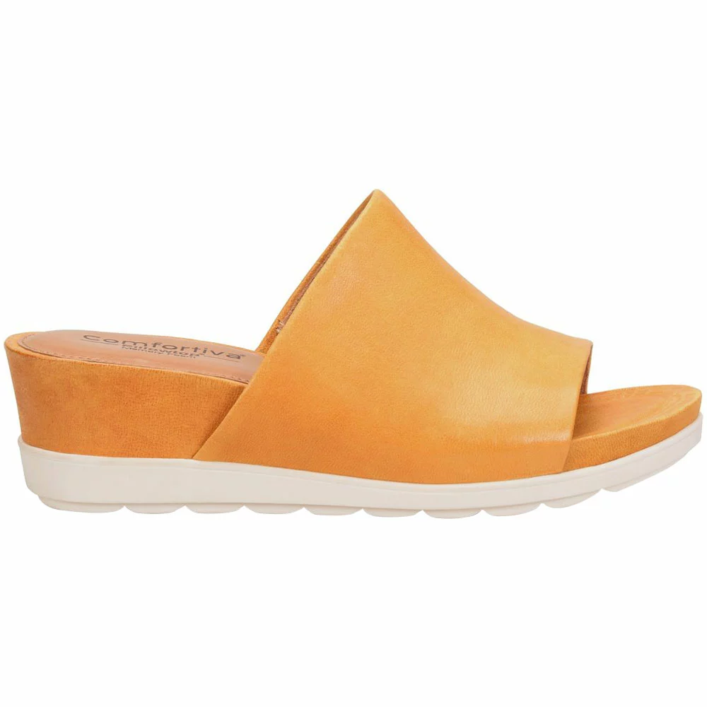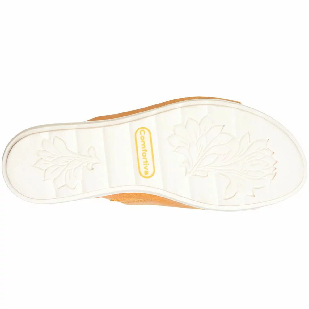Slide into summer in elegant style with the Comfortiva Pax. The classic silhouette of these womens sandals seamlessly elevates all your outfits. With its clean-lined design and plush leather feel, this sandal exudes straightforward class. The wedge heel offers the perfect height for you to stroll confidently on the boardwalk, down the pier, or throughout downtown.