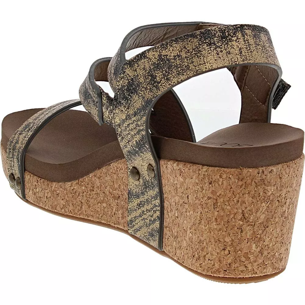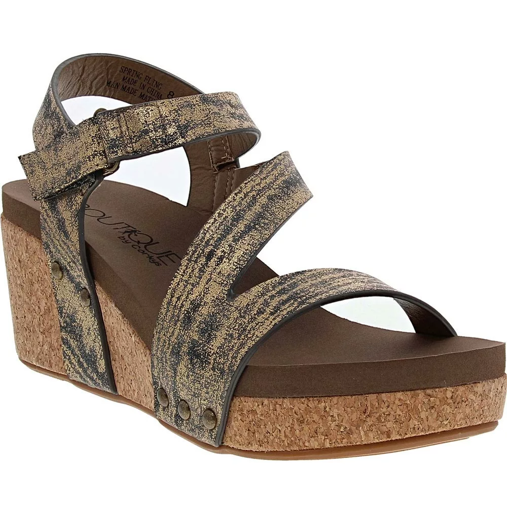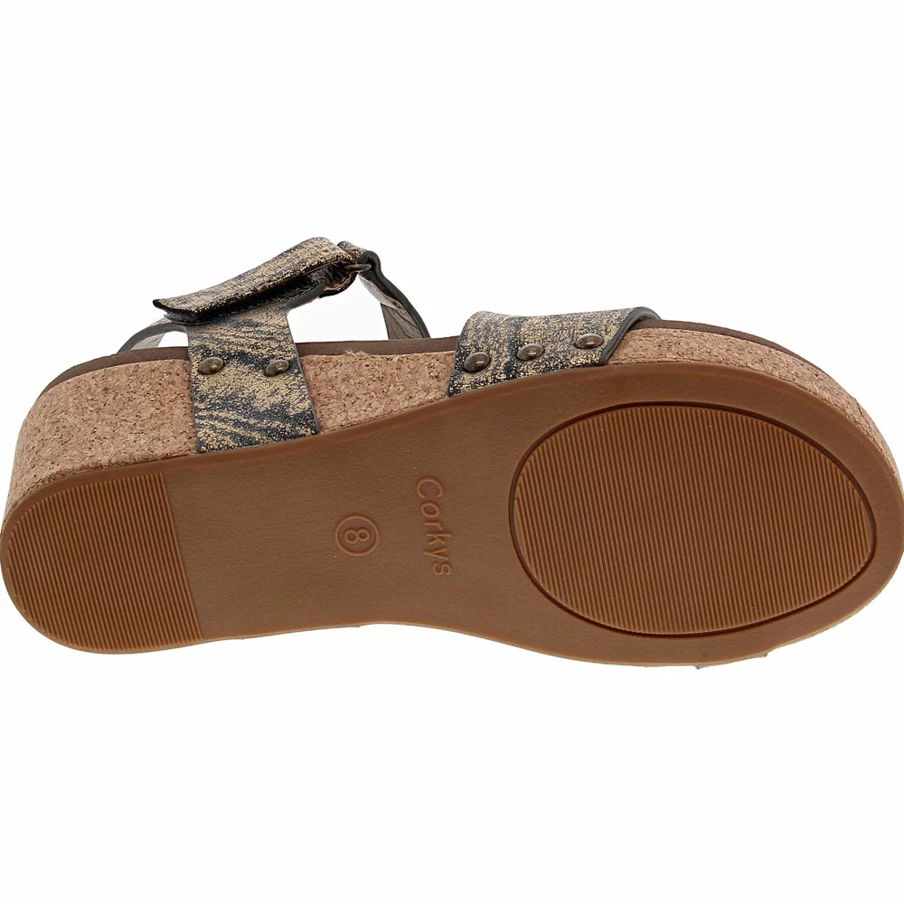 Get ready for your next party with style and spunk in these fresh womens sandals. Corkys Spring Fling sandals are strappy wedges fitted with gleaming studs and clever details. The footbeds are lightly contoured to help your feet stay comfortable all day. They slide on easily thanks to a simple hook-and-loop closure on the top strap. They’re an easy choice for your next night out.