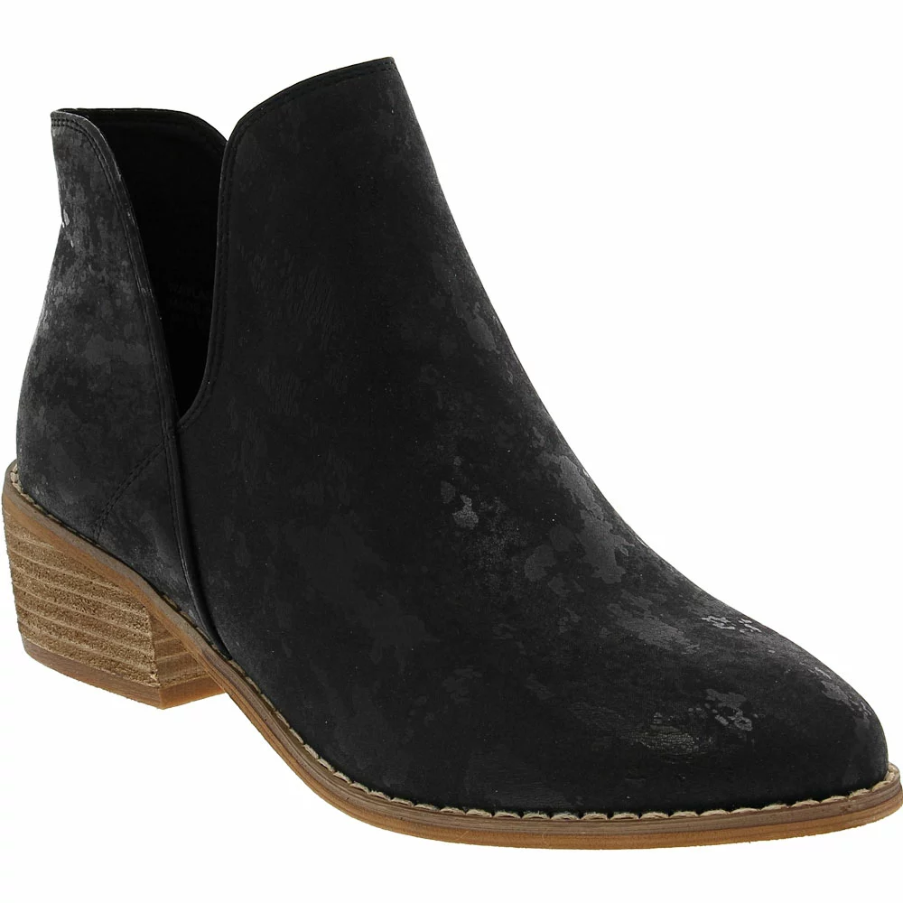 Corkys Wayland Ankle Boots – Womens. The Wayland from Corkys is simple and stylish. These womens ankle boots are versatile, pairing easily with any casual outfit in your closet. The faux leather upper looks great with jeans, skirts or dresses and has cutouts on each side that allow you to slip them on with ease. An EVA padded insole gives you cushioning and support, and the TPR outsole provides traction. The stacked heel is wide enough for easy movement while remaining fashionable.