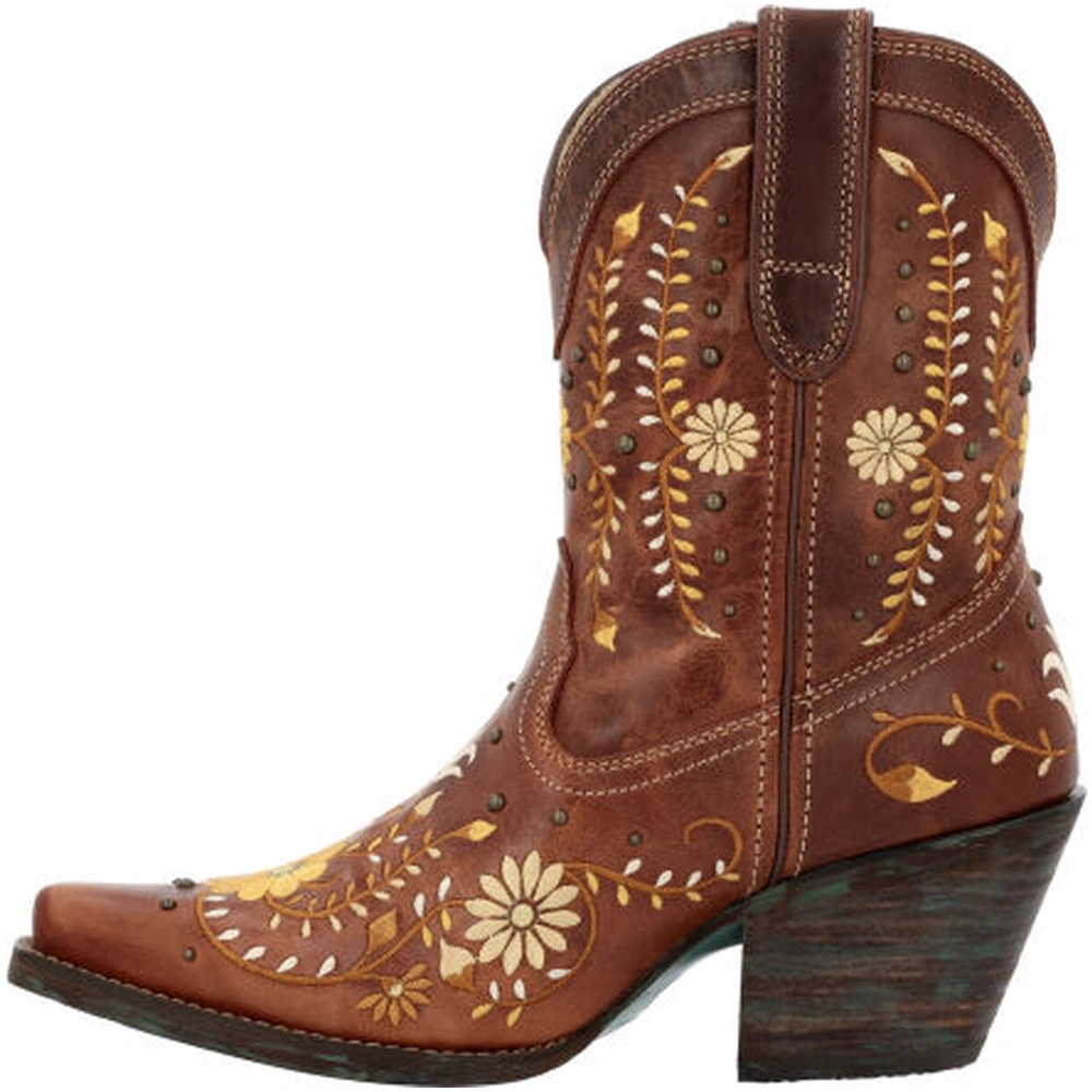 These womens western boots are a fun addition to any wardrobe. With a gorgeous embroidered upper, the Crush Golden Wildflower Western Boot from Durango can make any outfit more interesting. Along with looking great, these boots can easily keep you light on your feet with the Sole Comfort Footbed that provides plenty of cushioning and a mesh lining that adds breathability. The rubber outsole gives you traction for steady steps.