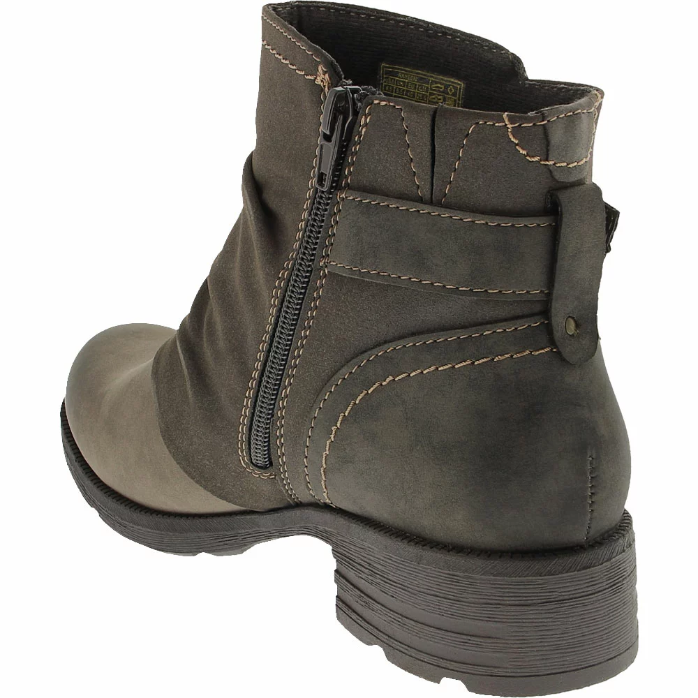 Accent your favorite warm-weather ensemble with these stylish womens casual boots. The soft synthetic upper has slouchy folds that add subtle flair. They give off a motorcycle boot vibe thanks to the adjustable buckle and block heel. Along with revving up your look, they are made to promote foot health. They have an innovative footbed with built-in arch support and extra cushioning in the toe and heel to stabilize steps.