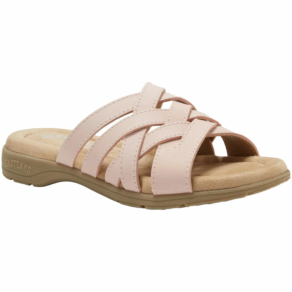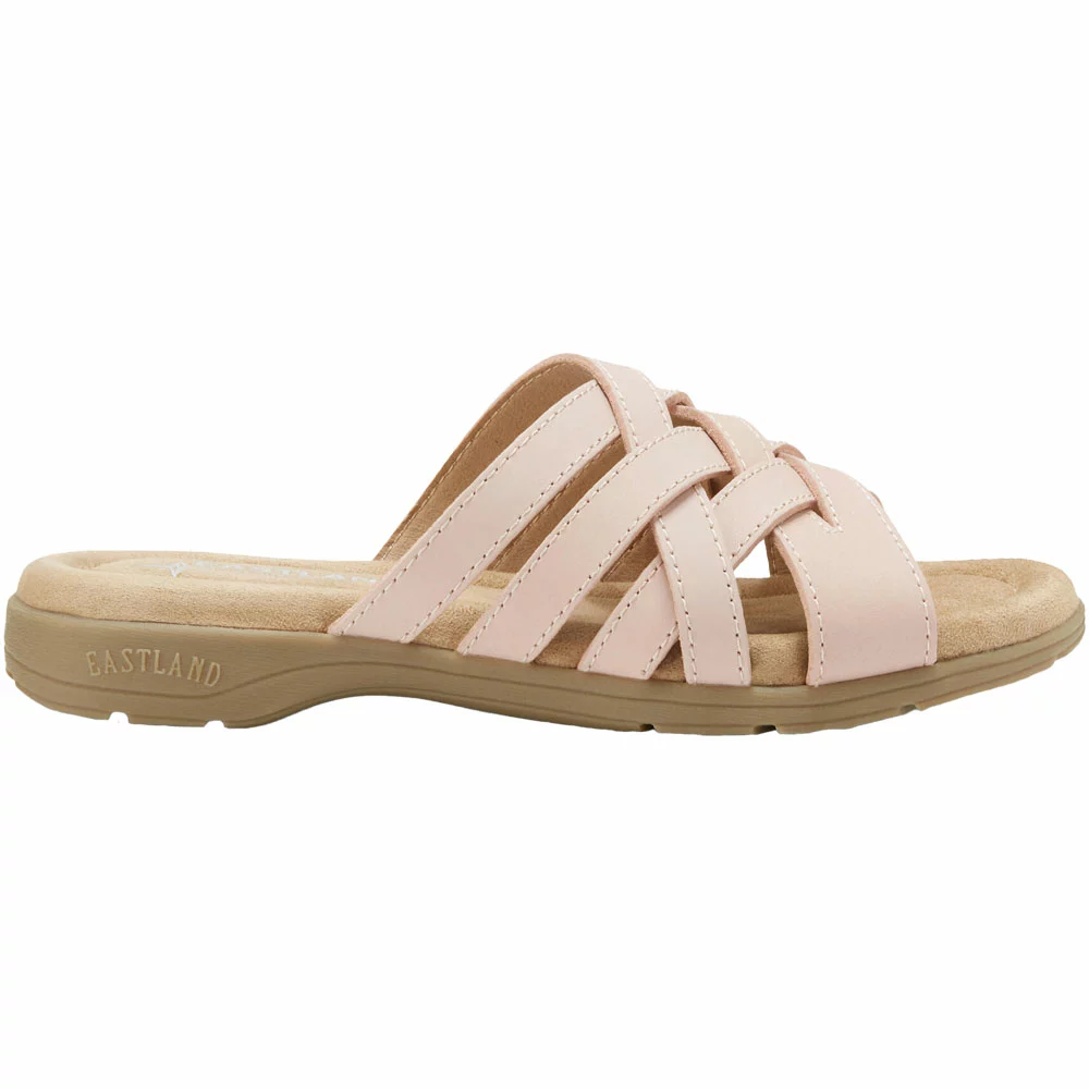 Eastland Hazel Slide Sandals for Women. The interwoven full grain leather straps on the top of the Eastland Hazel Slide Sandal will provide support and style all summer long. The comfortable insole is made of the Eastland exclusive Active Memory Foam. You can easily slip these sandals on and off thanks to the slide design, but you won’t slip on the ground thanks to the slip-resistant outsole.