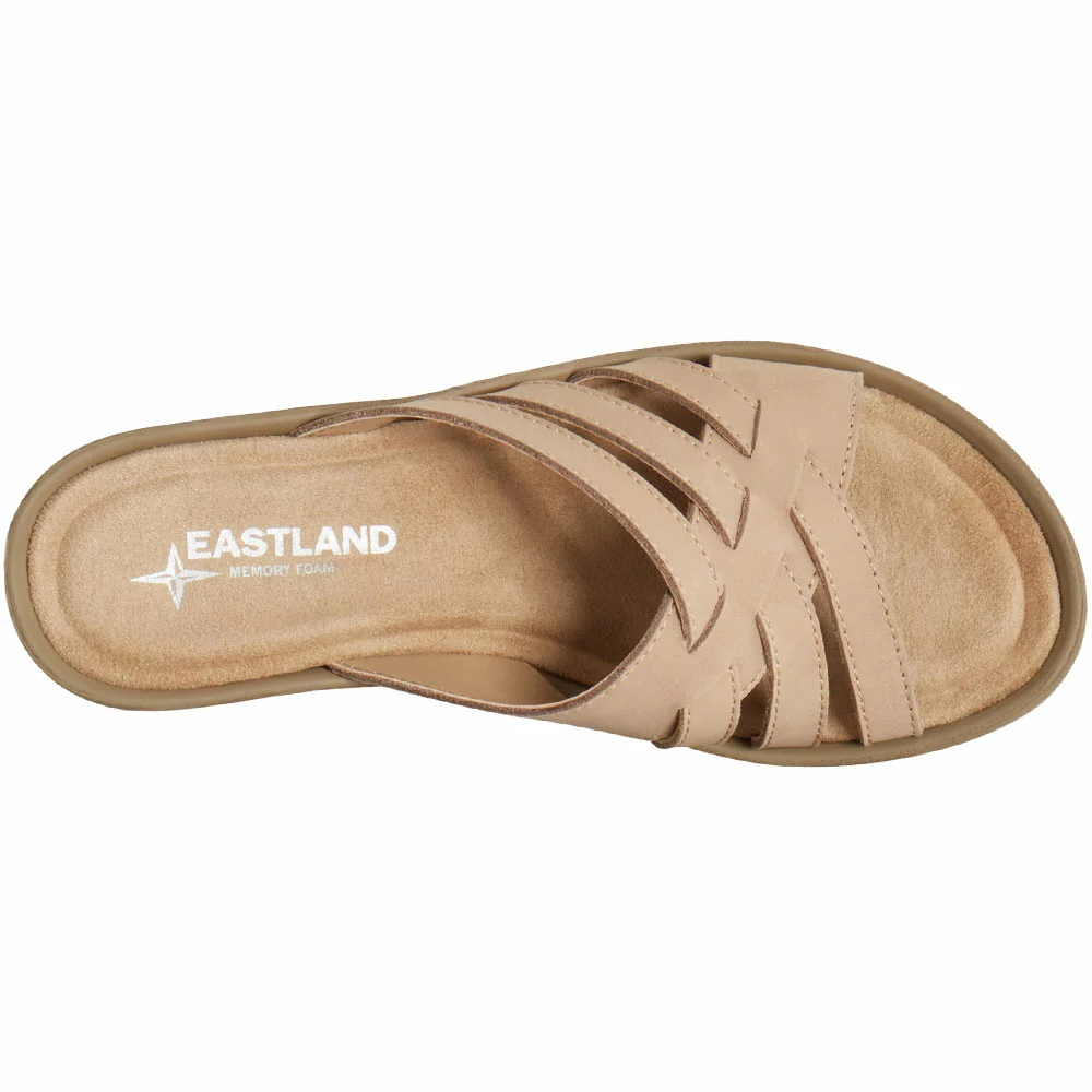 Eastland Poppy Women’s Slide Sandals. Complete your summer outfit with the Eastland Poppy Women’s Slide Sandals. These sandals feature Eastland’s Exclusive Active Memory Foam insole for tremendous comfort. The polyurethane outsole absorbs shock and provides great durability.