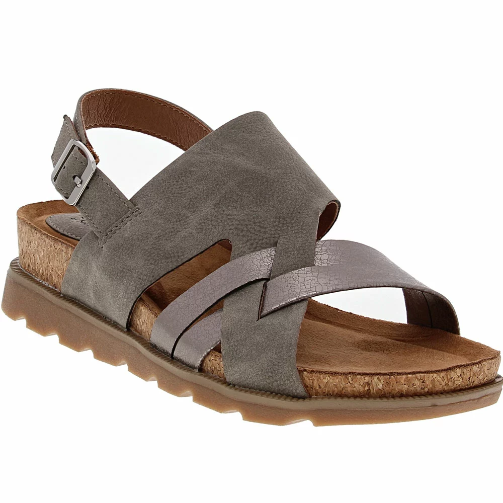 When it comes to versatility, these womens sandals are ready for anything. Whether dressing up or keeping it casual, they have a subtle style that goes with everything. Featuring a faux-leather upper, crisscrossing straps and an ankle strap that send out a spirited aura. Once on the move, they stay secure thanks to an adjustable back strap while the cushioned cork footbed softens every step. An EVA outsole offers flexibility and provides traction.