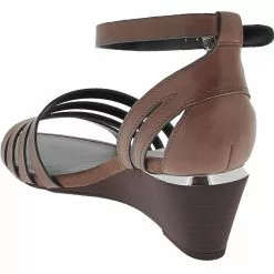 Franco Sarto Della Women’s Sandals. These chic, strappy wedge heels offer a classy look that can be dressed up or down, making them appropriate for almost any occasion and ideal for day-to-night wear. Four slim leather straps cover the vamp diagonally. Another strap circles the ankle, while an adjustable buckle closure allows a secure fit. The footbed is lightly padded for comfort, and the 2 ¼-inch stacked wedge heel is the perfect height for all-day wear.