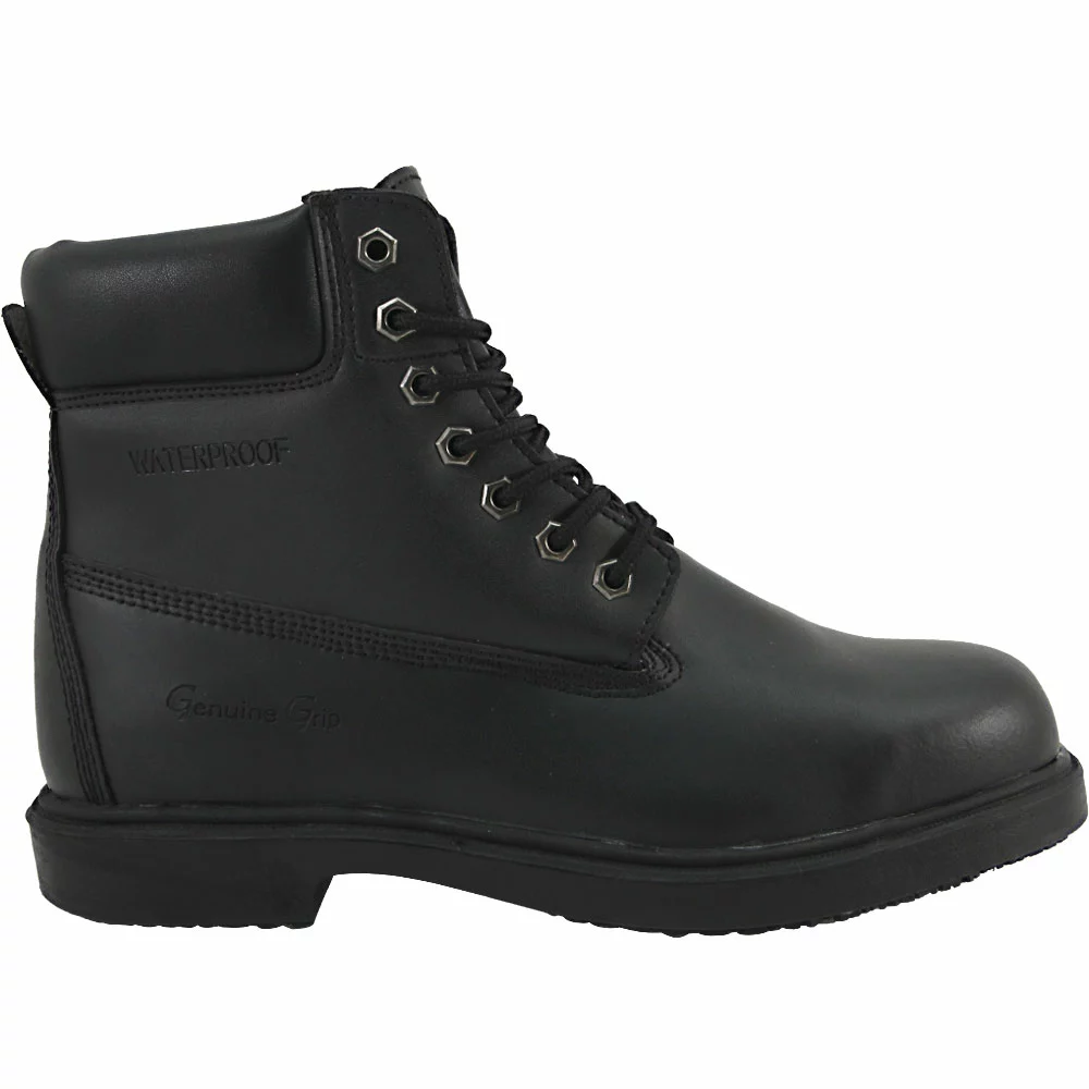 Genuine Grip Waterproof Hi Women’s Non-Safety Toe Work Boots. Protect your feet in a pair of Genuine Grip Waterproof Hi Women’s Non-Safety Toe Work Boots. The leather uppers are durable, the shock-absorbing PU midsoles keep you feeling good, the polyurethane insoles feel like clouds under your feet, et cetera et cetera. Long story short, these are good, quality, comfy, durable work shoes.