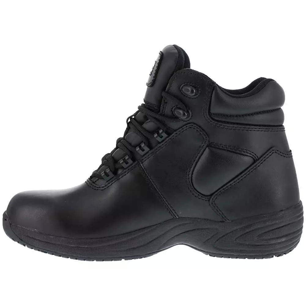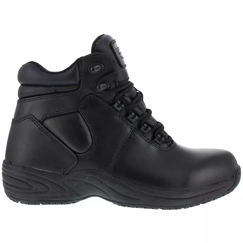 Grabbers G124 Fastener Women’s Work Shoes. Grabbers G124 Fastener features a genuine leather upper with nylon mesh lining. An EVA cushioned insert with a sponge rubber heel wedge provides great comfort for those long work days. The outsole is slip resistant with Sure Grip rubber. Security friendly and 100% non-metallic.