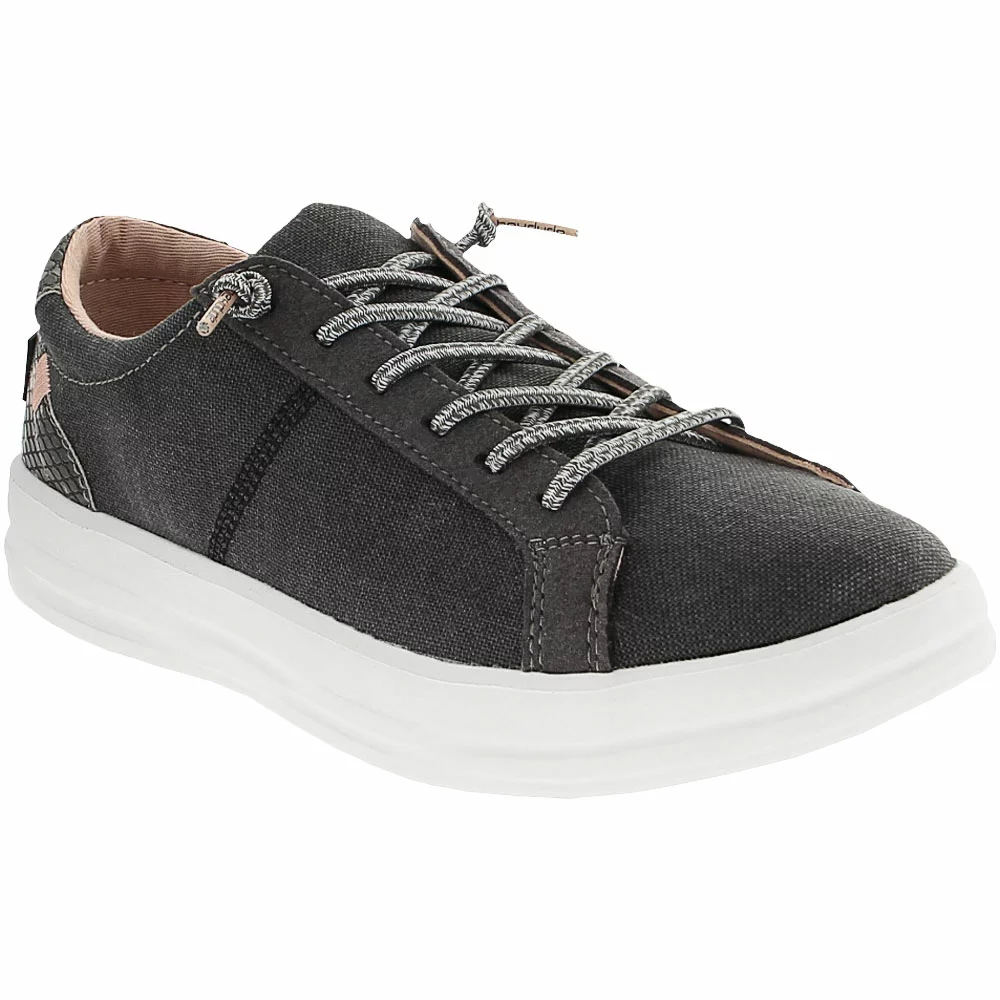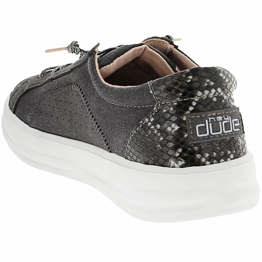 Hey Dude Karina Womens Slip On Casual Shoes. These womens slip on lifestyle shoes give the classic sneaker silhouette a new spin. The cotton canvas upper has a rounded toe and faux elastic laces that make heading out for errands or adventure a breeze. Designed to be flexible and lightweight, they have a removable cushioned insole and leather lining that lets feet breathe. These machine-washable sneakers have subtle details that add to their charm, making them a great everyday go-to shoe.