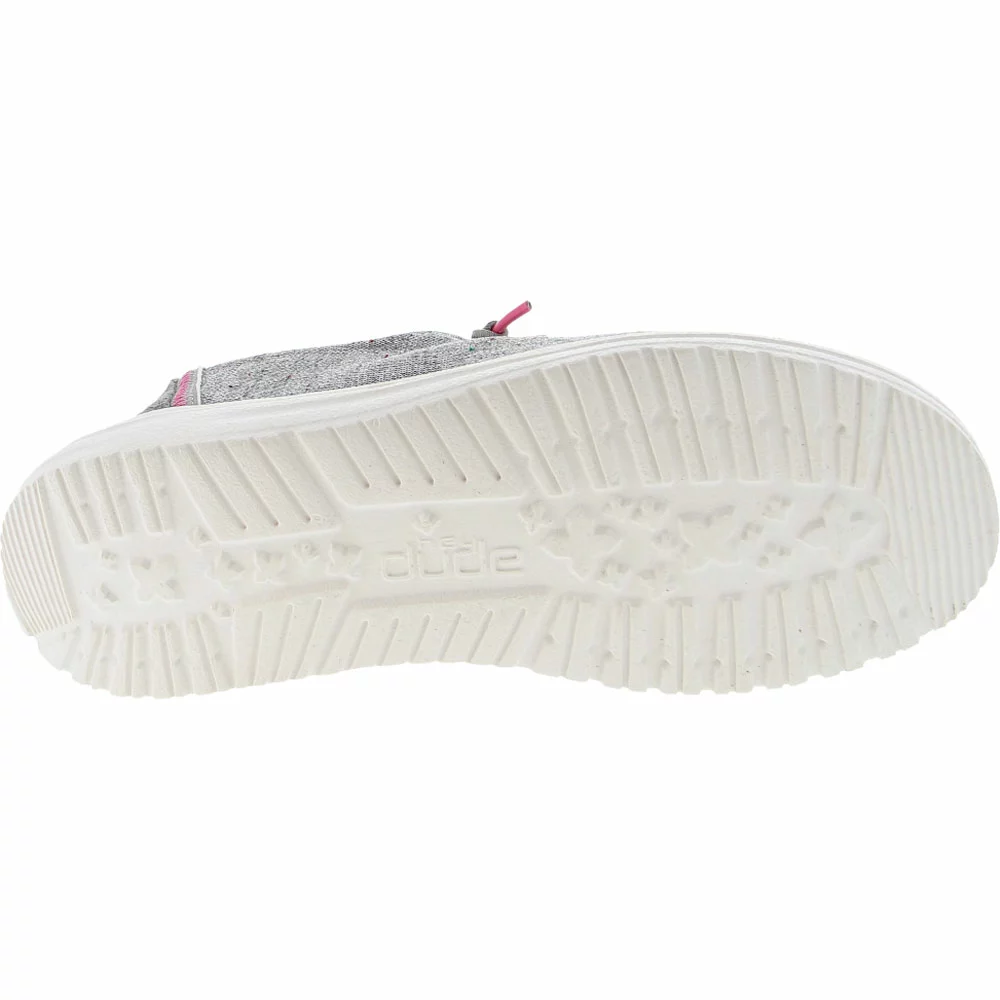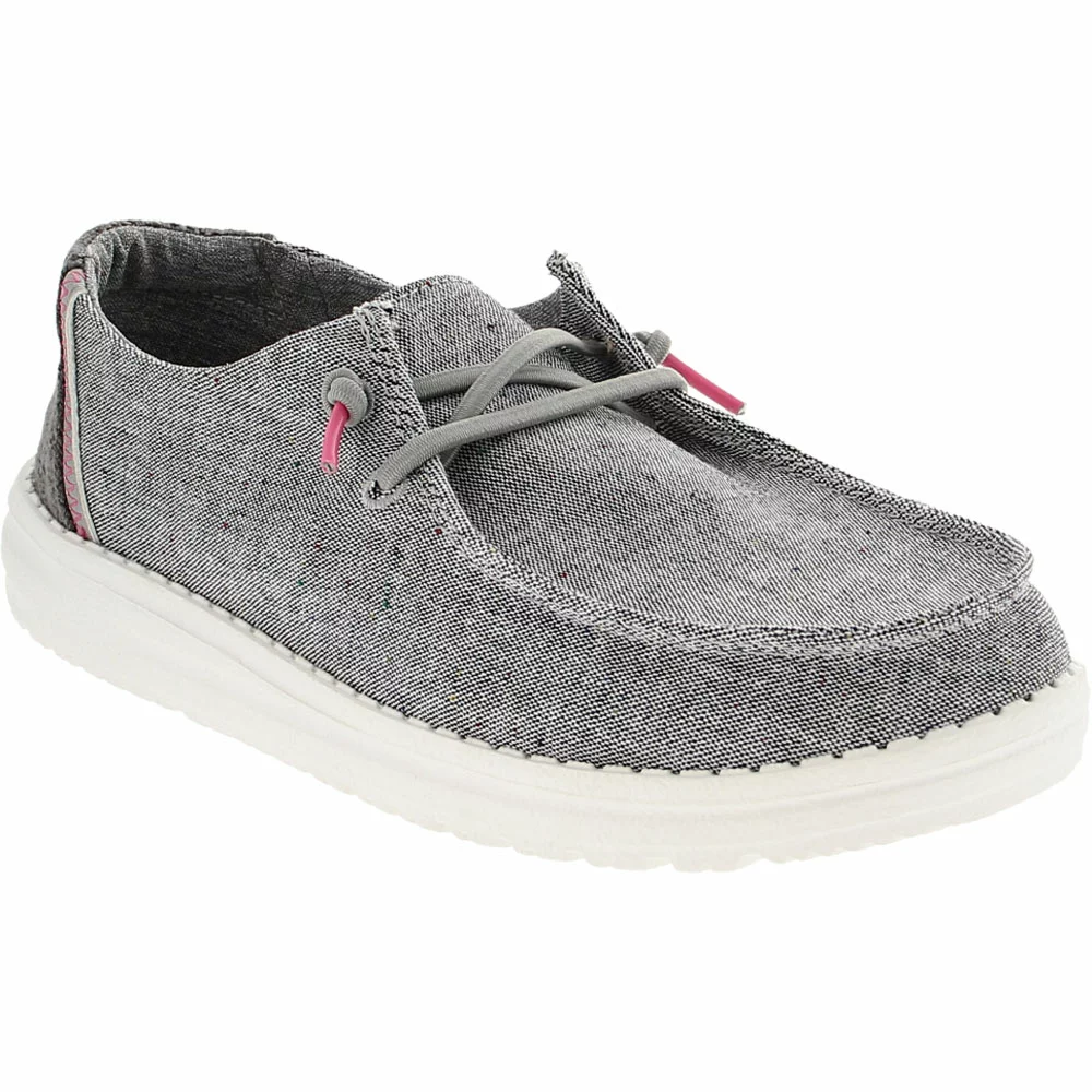 Update your collection with these womens casual shoes from Hey Dude. The Wendy pairs well with many styles, making them a great choice for daily wear. The outsole provides traction without weighing you down and is super flexible for easy storage. The memory foam insole cushions your feet for all-day comfort and support. Slide your shoes on quickly with an easy-on system and elastic laces. A little dirt is no problem with their machine-washable design.
