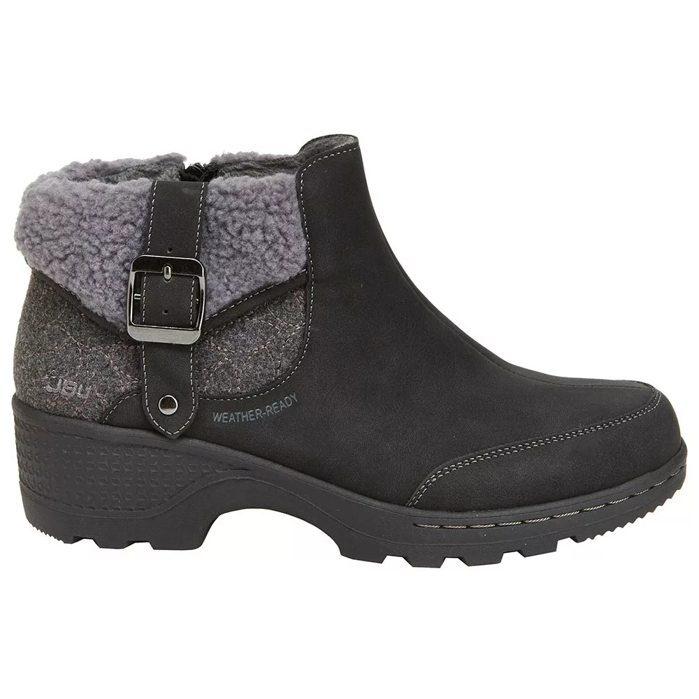JBU Haven Water Resist Casual Boots – Womens. This cute little boot is coziness personified. JBU has pulled out all the stops with the Haven womens water resistant casual boots. The faux fur collar and buckle accent ensure that the Haven has a place in any stylish wardrobe. The heavy lug All Terra outsole provides traction on a variety of surfaces, wet or dry. Protecting your feet from inclement weather has never looked so good.