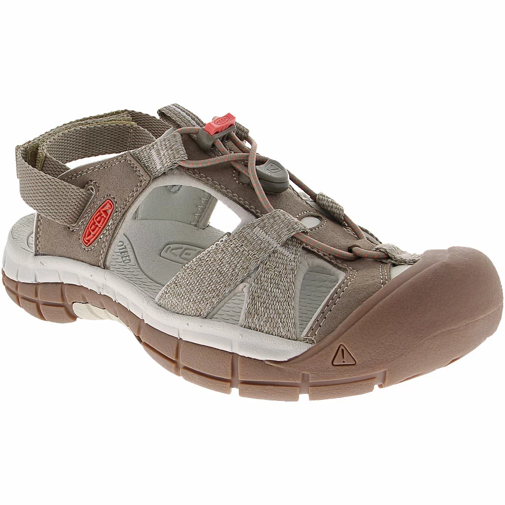 KEEN Ravine H2 Outdoor Sandals – Womens. Keen Womens Outdoor Sandals are always ready for adventure. The Ravine H2 sandals are crafted with ultimate comfort in mind even in the most rugged of circumstances. Precise balance and durability provide support in the soles to keep your feet safe and steady on outdoor escapades. The specialized toe cap and water-resistant lining make these the perfect all-terrain protection. Slip them on easily thanks to the customizable bungee lace capture system and new adjustable back strap.