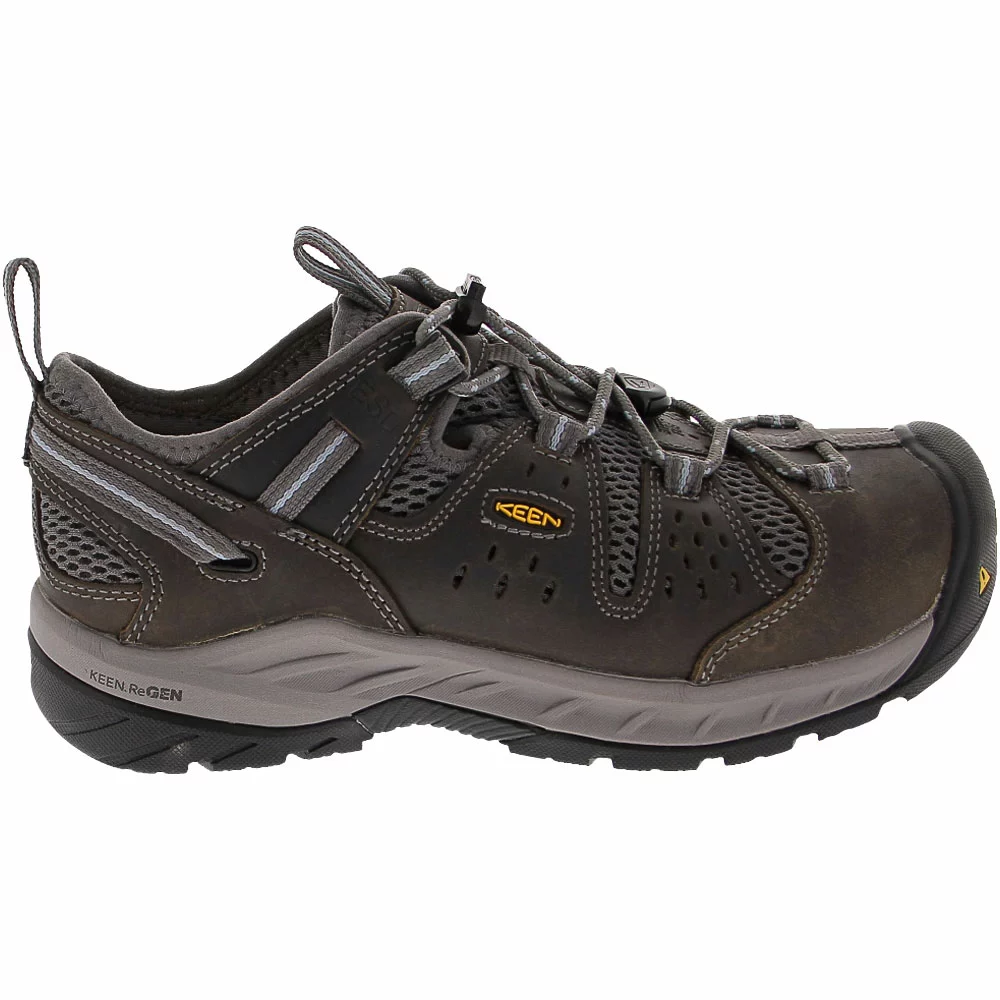 KEEN Utility Atlanta Cool 2 Safety Toe Work Boots – Womens. KEEN Utility’s Atlanta Cool II ESD womens safety toe work shoes work as hard as you do. KEEN’s exclusive ReGEN midsole provides 50% more energy return than regular EVA midsoles, while a contoured metatomical footbed gives you excellent cushioning and arch support. The Atlanta Cool II also sports non-mutilating uppers with reflective webbing and an external stability shank.