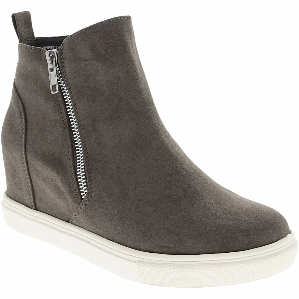Madden Girl Piper Casual Boots – Womens. Madden Girl Piper Casual Boots have hidden sneaker wedges, dual zippers on the front and the side, and soft suede uppers for a comfortable, laid-back appearance. These womens casual boots offer a fresh perspective on casual style, with high ankle slip-ons that pair well with jeans or flowy dresses. They look like high-top sneakers with extra height to give you some edginess.
