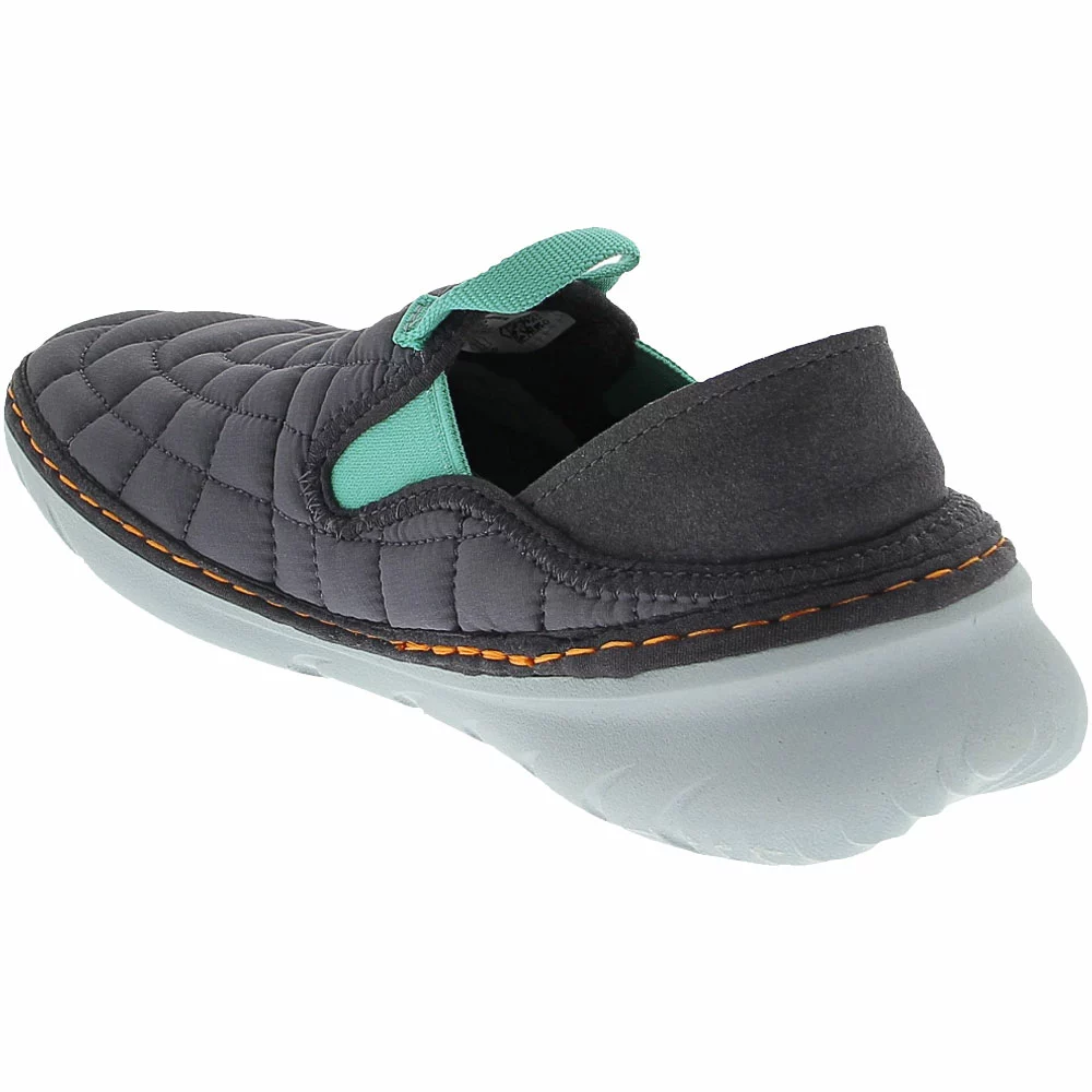 Merrell Hut Moc Slip on Casual Shoes – Womens. Great for camping outdoors or lounging indoors. These slip on casual shoes can handle light adventures, no matter where you are. Quilted nylon uppers and front pull loops to make entry and removal easy. They’re ultralight, cushioned, roomy and comfortable and made to handle walks on road and park terrains. The EVA outsoles provide support and traction.