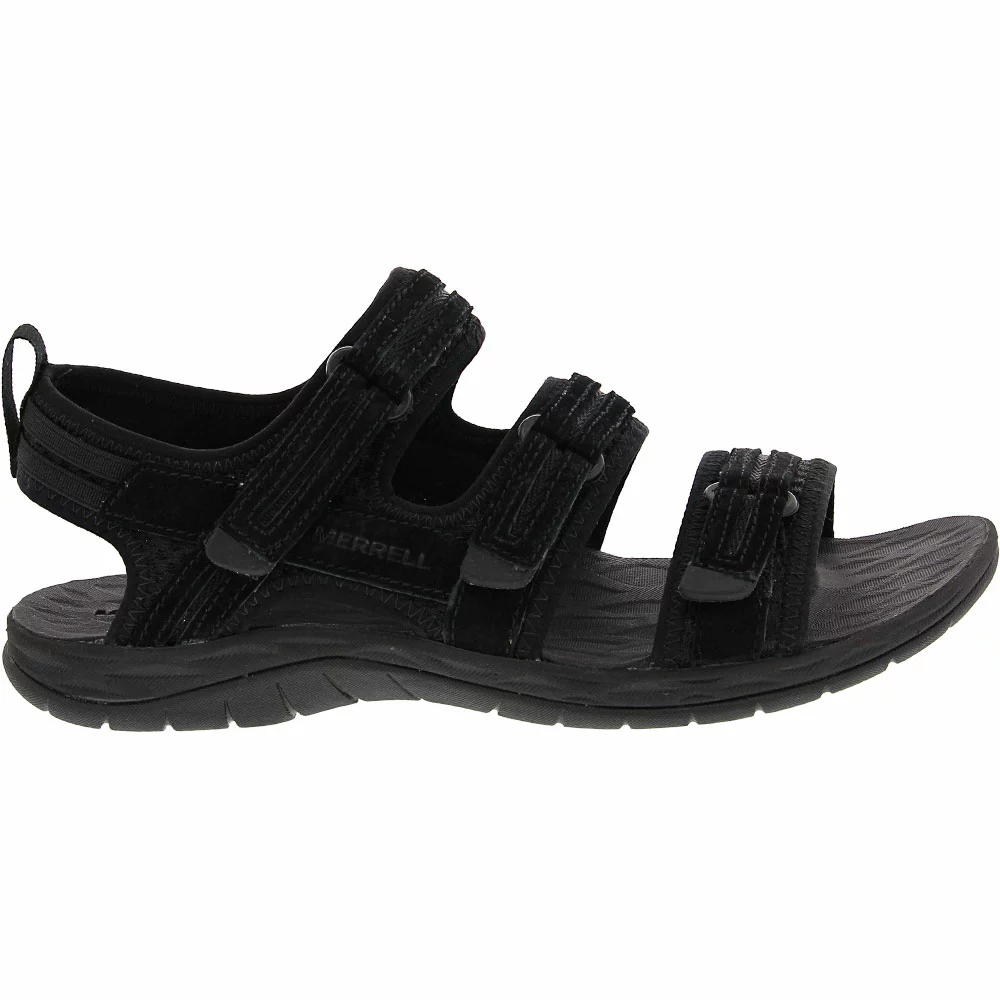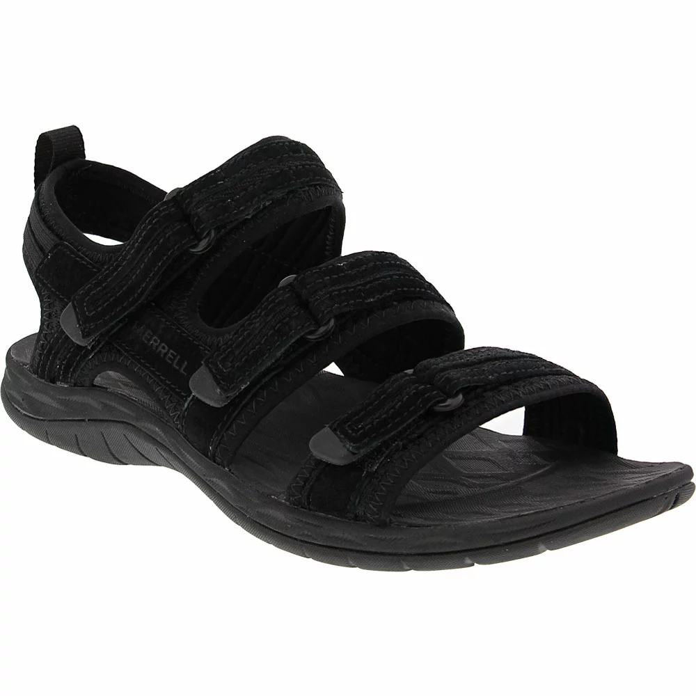 Merrell Siren 2 Strap Sandals – Womens. Hot days don’t have to mean hot feet when wearing these womens sandals. Designed for high-performance, they have a sleek, sporty style and are made to handle hiking, running or walking. The stylish suede and mesh upper has two forefoot straps and an ankle strap with an adjustable closure. Rugged yet lightweight, a padded footbed and dual-density midsole cushion and support each step. No matter the terrain, the lugged outsole offers grippy traction.
