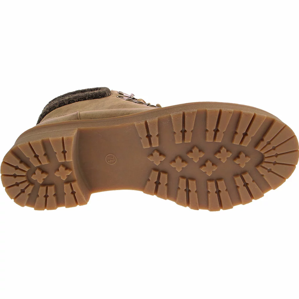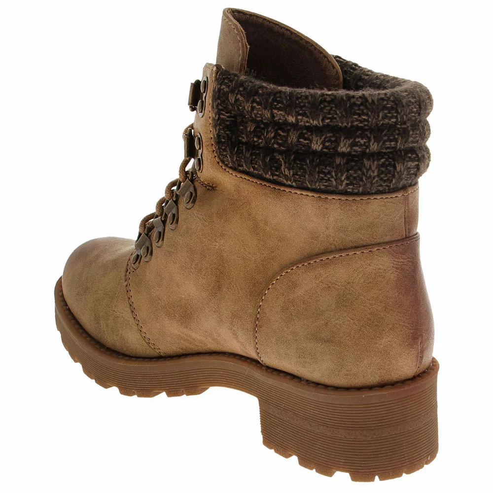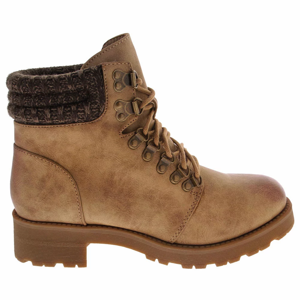Mia Marlon Casual Boots – Womens. Women with a fun, rugged side will appreciate these womens casual boots. Infused with elements of combat boots and work boots, they bring a spirited accent to casual ensembles. Featuring a durable upper with a sweater accent that adds a feminine flair. Metal loop enclosures give a touch of style to traditional lace-ups. Whether going on an outdoor adventure or enjoying city sights, their durable outsoles will keep you going.
