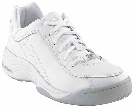 Nautilus 4038 Non Safety Toe ESD White Slip Resistant Work Shoe. Full-Grain, Water Resistant Leather Upper Removable Anti-Fatigue Polyurethane Insole, EVA midsole for maximum comfort, Highly durable, slip and oil-resistant Stabilizer outsole and Meets or exceeds ASTM F2413-05 Standards for SD Footwear “