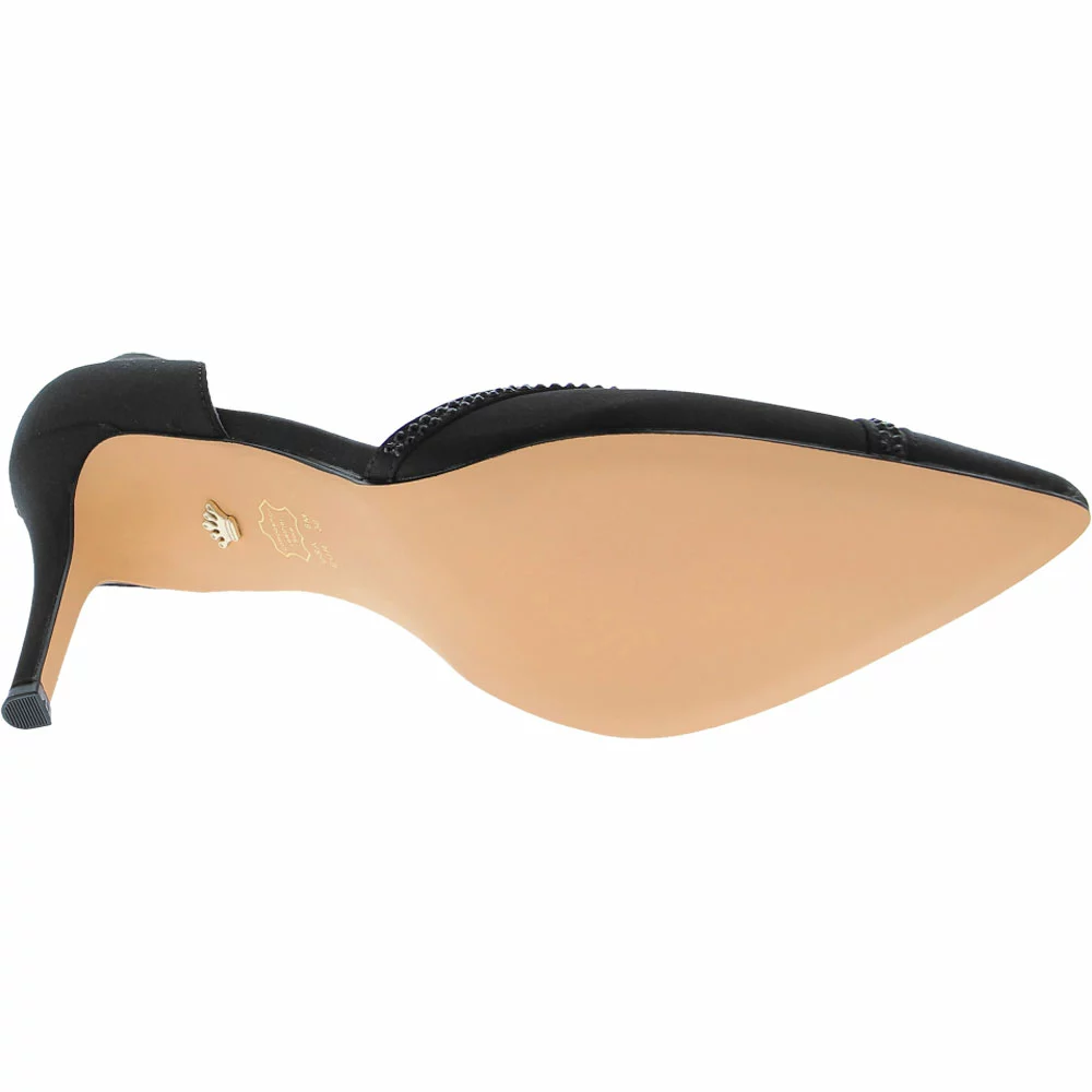 Nina Diora Prom Dress Shoes – Womens. Nina’s Diora pump lends an upscale touch to any outfit. This slip-on shoe offers sleek and simple elegance with its pointed closed toe and wrapped stiletto heel. Sparkling multifaceted hot-fix rhinestone embellishments form a crisscross pattern on the toe cap. Its classic d’Orsay silhouette flatters a wide range of ensembles including career, casual and evening wear. Manmade lining and a lightly padded footbed make the Diora a great everyday choice.