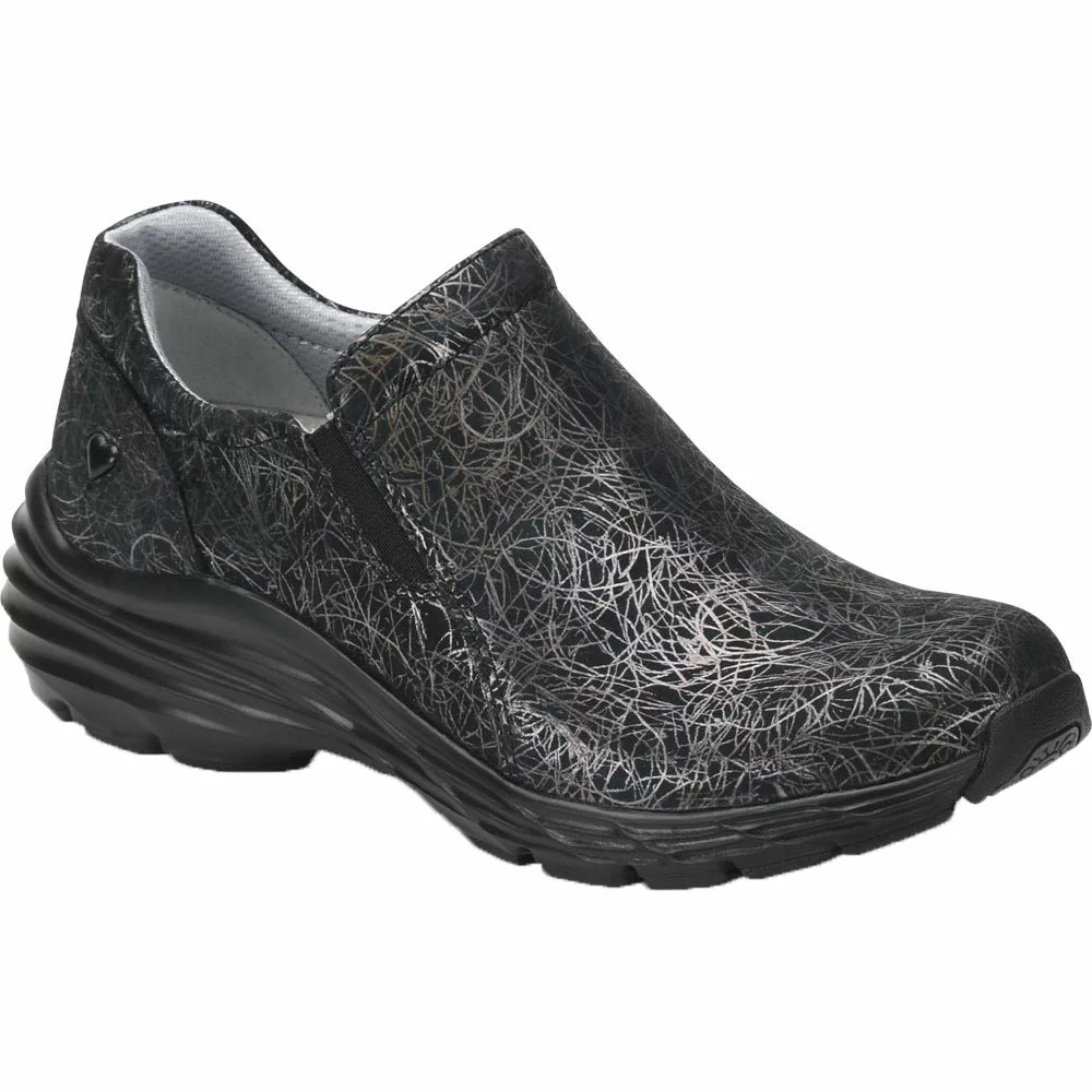 Nurse Mates Dorin Duty Shoes – Womens. Long hours on your feet can leave joints and muscles feeling fatigued. These duty shoes by Nurse Mates combine stylish good looks and slip-on convenience with an ergonomic Align™ orthotic that provides all-day stability and support. The Dorin features a crisp full-grain leather upper with dual stretch goring for a snug yet flexible fit and a lightweight, high-traction EVA outsole with built-in shock absorption.