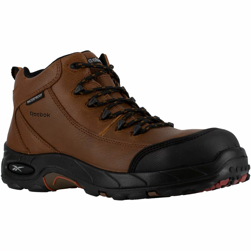 Reebok Work Rb444 Women’s Composite Toe Work Boots. Keep water away in this waterproof hiker from Reebok Work. Waterproofing is twofold: the leather resists water, but the internal membrane is entirely waterproof. The electrical hazard protection makes this boot fit in at just about any workplace.