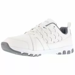 Reebok Work Rb424 Women’s Non-Safety Toe Work Shoes. It’s tough to go wrong with this athletically designed sneaker from Reebok Work. It combines comfort with practicality, using extra cushioning underfoot with a slip resistant rubber and electrostatic dissipative outsole. The shoe is airport friendly too, since there is no metal at all in its construction.