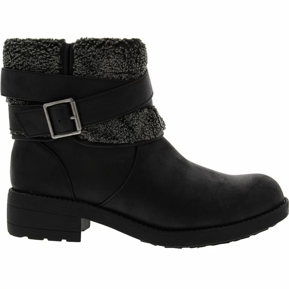 Stay cute and cozy no matter the weather with these stylish womens ankle dress boots. Perfect for chilly days and frosty nights, the Rocket Dog Trepp Ankle Boots come with a folded faux shearling cuff. Add some edginess to your look with the wrap-around ankle strap and buckle. The inside zipper closure makes it easy to pop these shoes on, and the foam footbed provides comfort in every step.