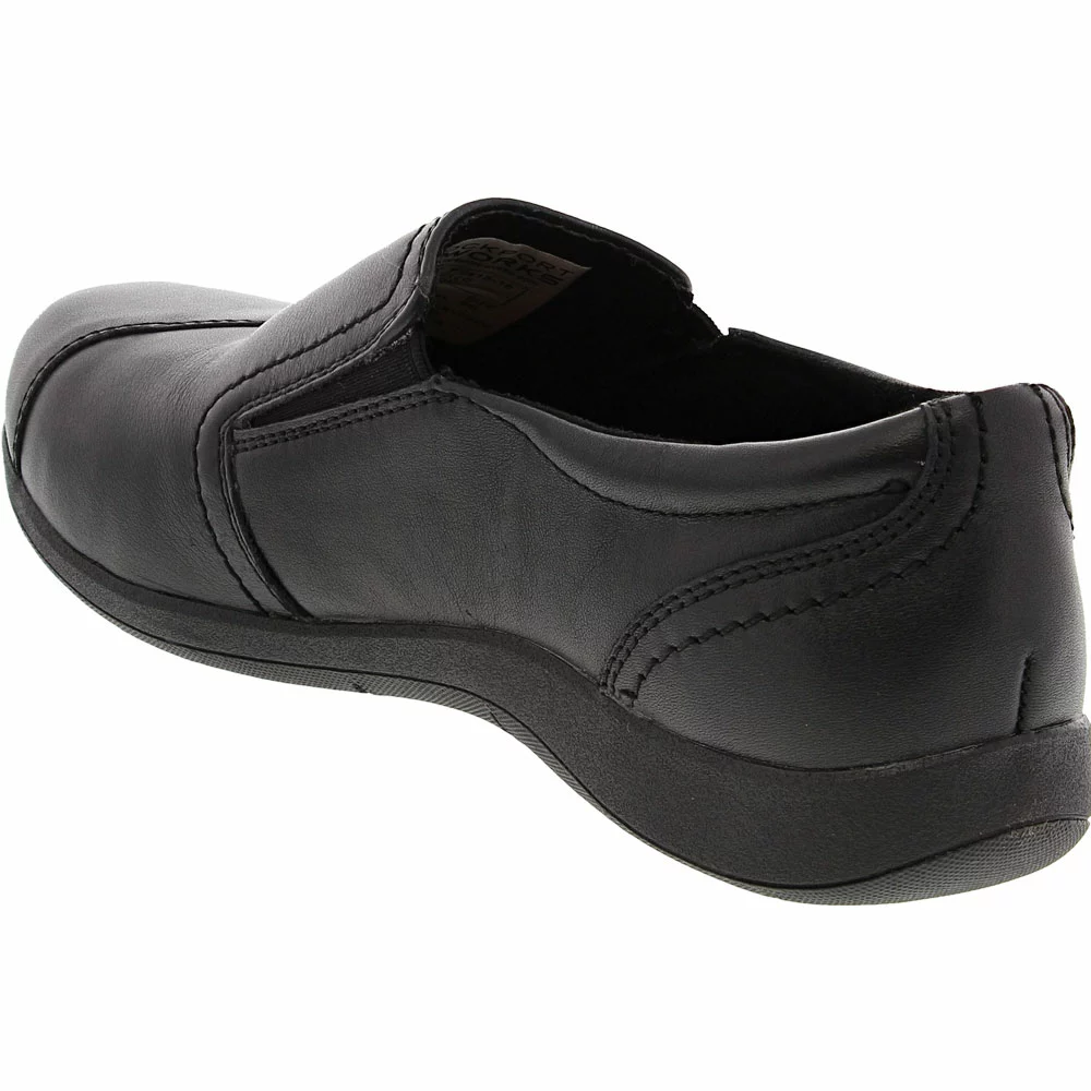 Rockport Works Rk761 Daisey Work Safety Toe Work Shoes – Womens. With the Daisy work shoe by Rockport, you enjoy the perks of tough womens safety toe work boots and the ease of a slip-on shoe design. Perfect for wear in the restaurant industry and hardy enough to wear at a construction site, the Daisy sports an internal alloy toe-cap and is built with a slip-resistant rubber wedge outsole.