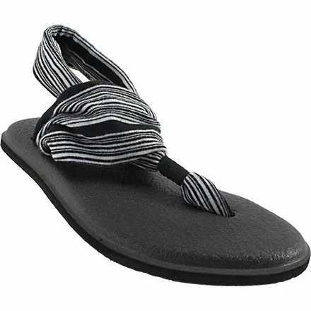 Sanuk Yoga Sling 2 Women’s Thong Sandals. Head outside with the Sanuk Yoga Sling 2 sandal. For comfort, this sandal provides you with a lightweight, two way stretch knit fabric upper. The footbed is made from real yoga mat with a sealed edge and stitch detail. Get traction and durability with the Happy U sponge rubber outsole.