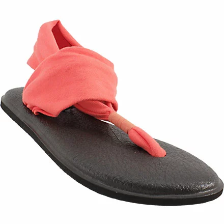 Sanuk Yoga Sling 2 Women’s Thong Sandals. Head outside with the Sanuk Yoga Sling 2 sandal. For comfort, this sandal provides you with a lightweight, two way stretch knit fabric upper. The footbed is made from real yoga mat with a sealed edge and stitch detail. Get traction and durability with the Happy U sponge rubber outsole.