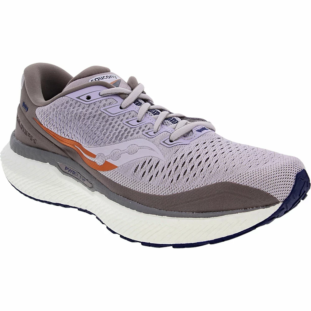 Saucony Triumph 18 Running Shoes – Womens. Go ahead and put that marathon on your calendar for next spring. With Triumph 18 shoes from Saucony on your feet, you’ll be more than ready. Impressively comfortable womens running shoes, Triumph 18 have PWRRUN+ midsole cushioning that simply babies your feet. The engineered mesh upper is breathable and supportive, providing you with a custom-like fit. The midsole has been retooled to be more flexible and responsive. The miles fly by with Triumph.