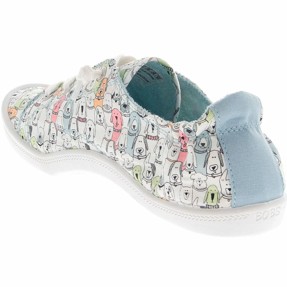 Skechers Beach Bingo Wag Party Womens Life Style Shoe. Get doggy cuteness with the BOBS Beach Bingo – Camp Wag shoe. This casual slip-on sneaker features a soft canvas upper with an allover ‘Wag Party’ print and a cushioned Memory Foam comfort insole.