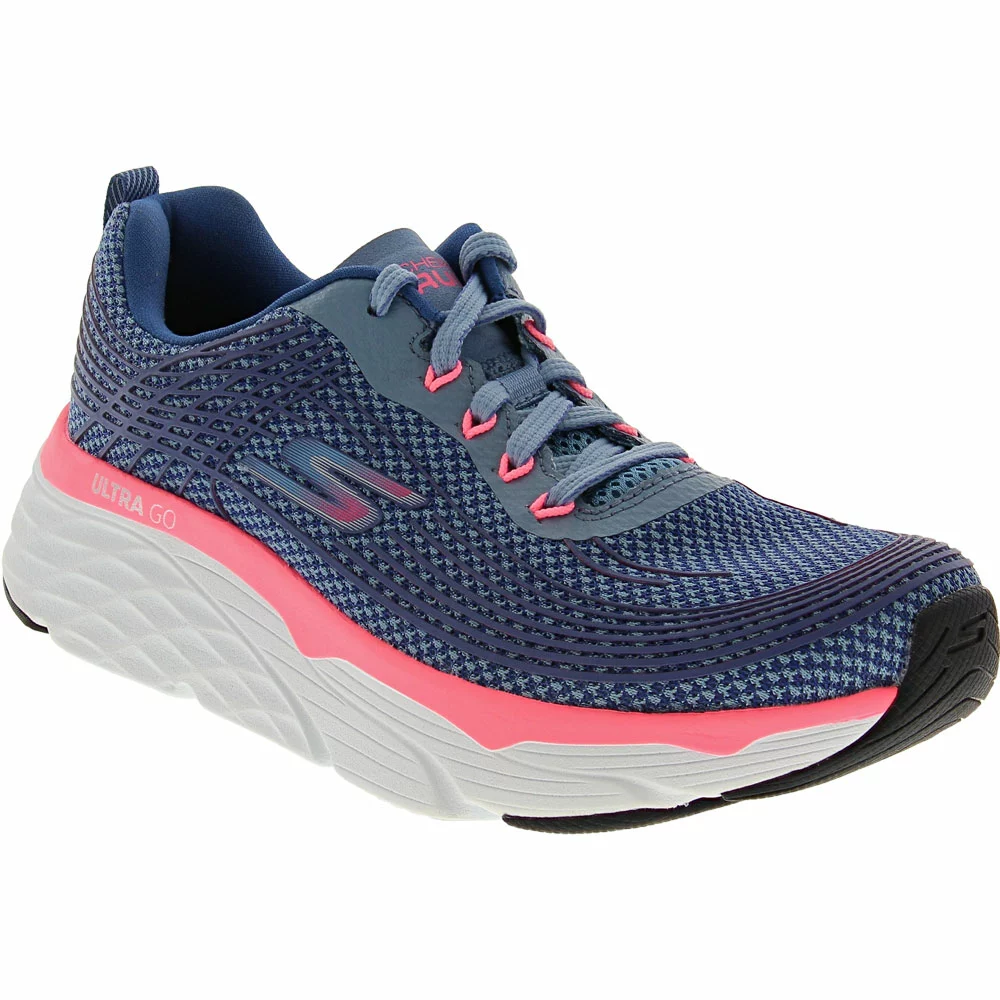 Skechers Max Cushioning Elite Walking Shoes – Womens. Athletes know that comfortable womens walking shoes are necessary for tough workouts. Thankfully, this Skechers sneaker features both response and cushioning. The upper is practically seamless and has mesh fabric for breathability. The midsole includes the responsive yet cushioned ULTRA GO® platform. Finally, the durable yet lightweight outsole provides traction on multiple surfaces. Other features include a mid-foot strike zone for efficiency and forefoot flex grooves for a better transition.