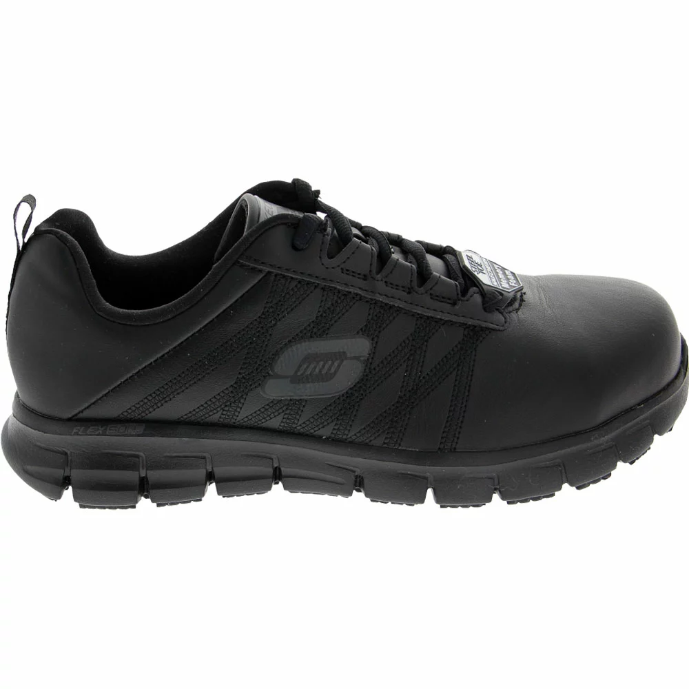 Skechers Work Martley Women’s Safety Toe Work Shoes. Look great and stay well protected when you choose the Sure Track Martley Steel Toe Shoe from Skechers’ Work collection. Supple leather makes for high-quality uppers, while FlexSole technology works to limit underfoot shock. A rugged rubber outsole grips varied surface types with confidence, as the padded tongue and collar protect against fatigue during long days on your feet.