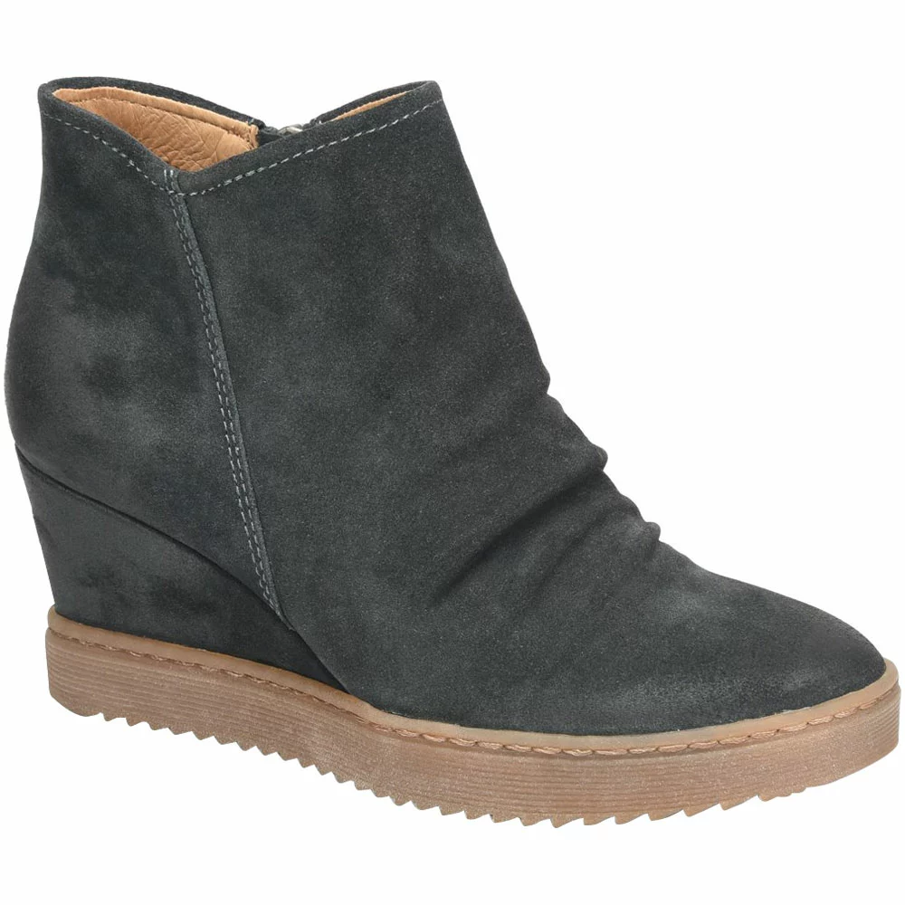 Sofft Siri women’s wedge ankle boots. Blending a more modern style with being cozy and comfortable all day is the Sofft Siri waterproof wedge boot for women. The side zipper on the inside of the boot allows you to quickly get these on or off, and the leather cushioned insole keeps you foot comfortable and supported all day. A microfibre lining allows a smooth feel that does not chafe while walking in these wedge fashionable boots.