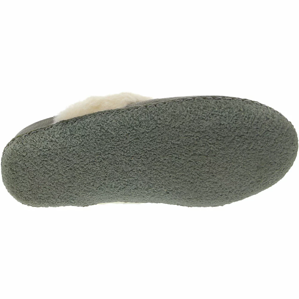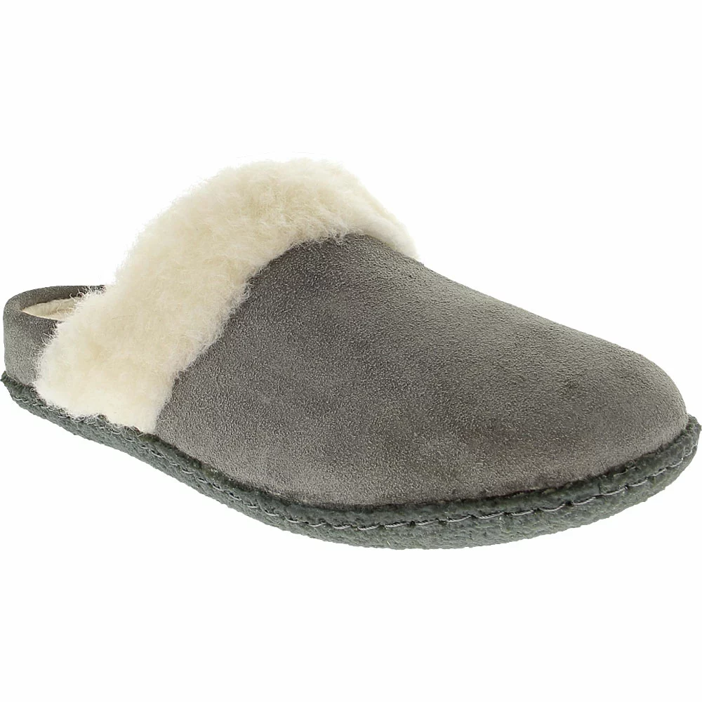 Sorel Nakiska Slide 2 Women’s Slippers. These mule-style women’s slippers feature faux fur lining and a thick rubber outsole to provide cushioning and insulation. A seamless suede upper creates a classic profile with a single line of stitching near the top of the outsole. Removable molded EVA footbeds will conform to the shape of your feet over time. A low back makes these slippers easy to put on and take off, and is imprinted with the brand name.