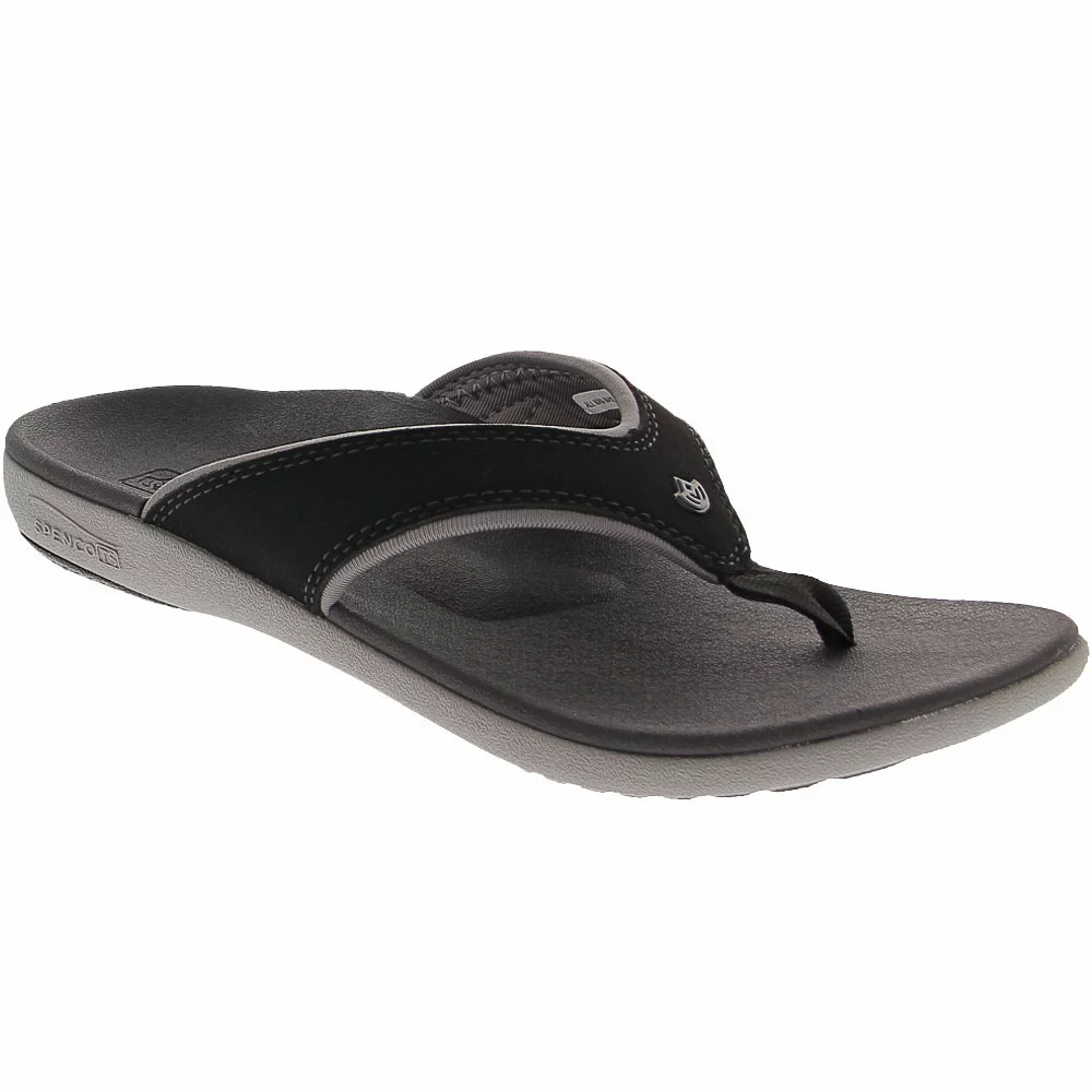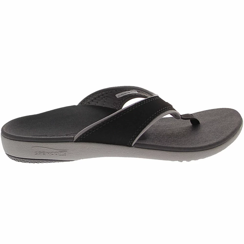 Spenco Yumi Plus Thong Women’s Flip Flops. These flip flops have a casual, beachy style with plenty of comfort features to keep your feet supported, cushioned, and happy. Wear them on trips to the shore, vacations, and busy weekends. The contoured insole features a heel cup with extra padding, excellent arch support, and a metatarsal dome for the most comfortable wear possible. The wide polyurethane straps have a soft, sueded appearance, and they are lined with moisture-wicking fabric to keep feet cool and dry.
